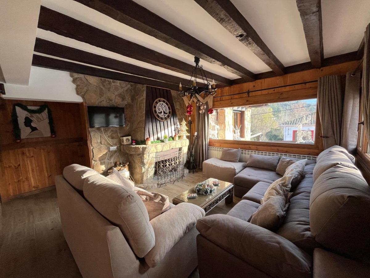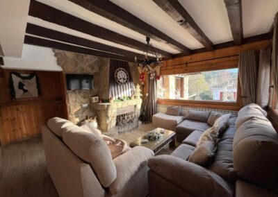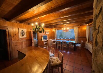 La sala de estar ofrece una acogedora chimenea de piedra que brinda calidez en las noches frescas, invitando a los huéspedes a relajarse con una copa de vino junto al fuego.