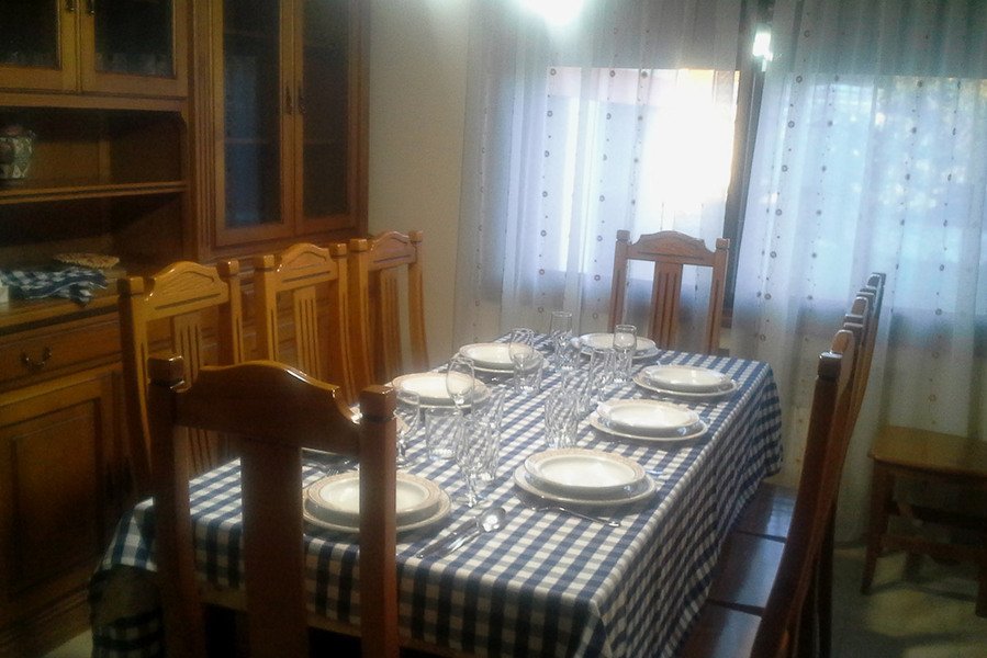 El interior de la casa invita al descanso y la convivencia, con un amplio salón-comedor con chimenea, zona de estar con televisión y DVD, y una cocina totalmente equipada con todo lo necesario para que te sientas como en casa: vitrocerámica, horno, frigorífico, lavavajillas, microondas, tostador y cafeteras. También dispone de Wi-Fi gratuito, calefacción en todas las estancias y una colección de juegos de mesa para disfrutar en grupo. Para familias con niños pequeños, hay dos cunas y una trona disponibles.
