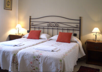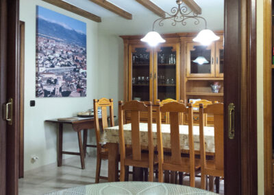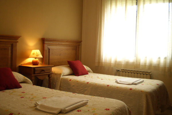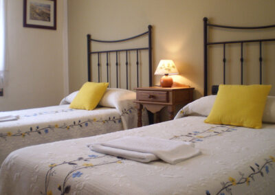 Casa Rural Las Tuyas con capacidad para hasta 8 personas, está diseñada para ofrecer comodidad y amplitud a familias y grupos de amigos. Dispone de cuatro habitaciones, tres de ellas dobles con camas individuales y una principal con cama de matrimonio y baño. Los tres baños están equipados con toallas, secador de pelo y productos de aseo.