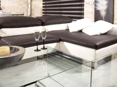 En el interior del salón, encontrará una estancia muy amplia y confortable. Dispondrá de un amplio equipo de audiovisuales que consta de una gran pantalla de plasma, DVD y equipo de sonido. El salón también cuenta con una amplia mesa que combina cristal y metal en la que nos podremos sentar y disfrutar de una suculenta comida.