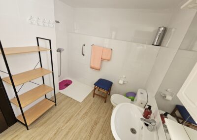El interior de la casa cuenta con 4 acogedores dormitorios que comparten 3 baños completamente equipados, ofreciendo comodidad y privacidad para todos los huéspedes. El estilo rústico y las cuidadas decoraciones crean una atmósfera cálida y hogareña. Además, la casa está adaptada para personas con movilidad reducida, ya que dispone de silla de ruedas, sillón elevador y adaptaciones específicas en uno de los baños.