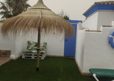 El exterior de la casa es un verdadero paraíso. Un jardín privado te invita a relajarte bajo el sol andaluz, mientras que la piscina ofrece un toque especial para tus baños. La zona de barbacoa y la terraza son perfectas para disfrutar de comidas al aire libre en compañía de tus seres queridos. Además, la propiedad está totalmente vallada, garantizando la seguridad de niños y mascotas.