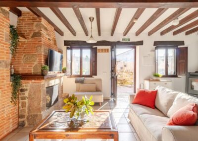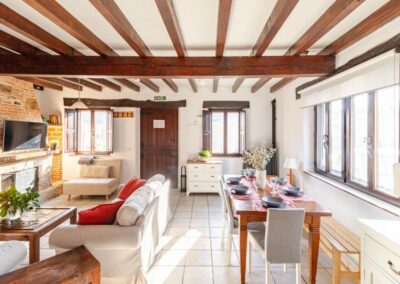 Con una superficie de 130 metros cuadrados, Casa Vallejo se distribuye en dos plantas y puede alojar cómodamente hasta 7 personas. Al entrar, serás recibido por un salón comedor amplio, con varios espacios de descanso y una chimenea de pellets que proporciona calidez y un ambiente acogedor. La mesa de comedor comunica directamente con la cocina office, equipada con todos los electrodomésticos y utensilios necesarios para preparar tus platos favoritos.