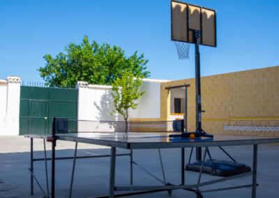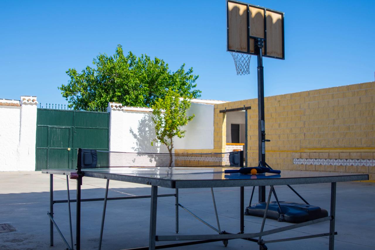 El exterior del Cortijo Del Coco es un verdadero oasis. Durante los meses de verano, podrás relajarte en la piscina independiente rodeada de césped natural, o disfrutar del sol en las hamacas. Para los amantes de las barbacoas, hay una zona con barra exterior perfecta para comidas al aire libre. También hay una pista de juegos con canasta de baloncesto y mesa de ping-pong, además de un cuarto de baño adicional para mayor comodidad.