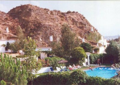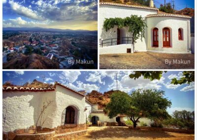 En relación al complejo, se encuentra un conjunto de singulares viviendas típicas de la región granadina conocidas como casas-cueva. Estas residencias tienen su origen en el siglo XV y son excavadas en las rocas, manteniendo una temperatura constante alrededor de los 20ºC, característica que las hace únicas.