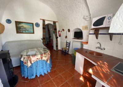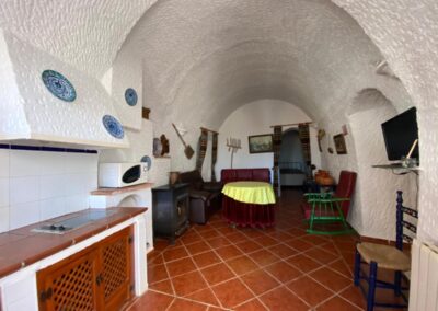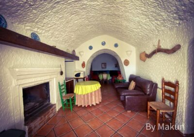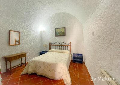 - Dos cuevas para 8 personas, con habitación de matrimonio, tres habitaciones dobles, dos baños, salón, cocina, zona de barbacoa, aparcamiento, y calefacción.