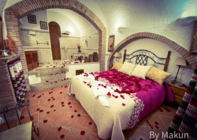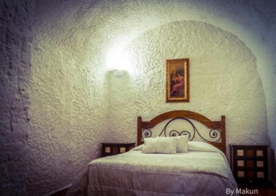 - Cinco cuevas con capacidad para 2 personas, cada una con habitación de matrimonio o doble, baño, salón, cocina, zona de barbacoa, aparcamiento, calefacción, y algunas con estufa de leña. Una de estas cuevas está especialmente diseñada para salidas románticas, incluyendo jacuzzi y chimenea de leña, además de un obsequio de cava y frutos secos para los huéspedes.
