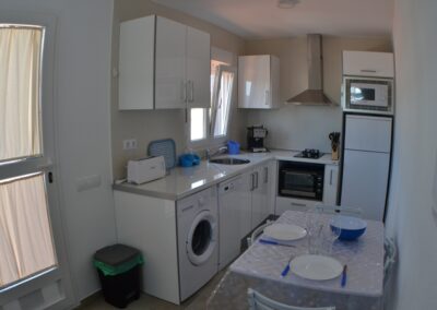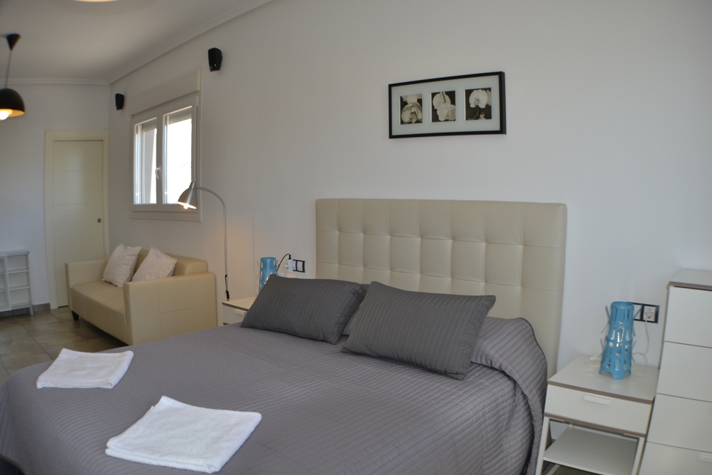 Dispone de: Cocina totalmente equipada, baño independiente con 2 lavabos, Salón-Dormitorio en abierto con una excelente orientación y una amplia terraza. Apartamento ideal para parejas. Capacidad máxima 3 personas con una cama supletoria adicional.