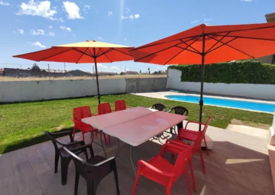 En el exterior, un maravilloso jardín privado te espera con una gran piscina perfecta para los días soleados, una barbacoa de gas para preparar deliciosas comidas al aire libre, y una elegante terraza con una acogedora zona chill-out con sofás. Este espacio es ideal para relajarte y disfrutar de la tranquilidad del entorno.