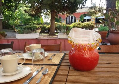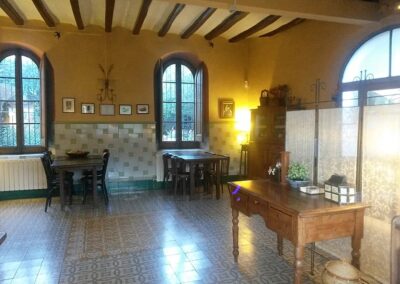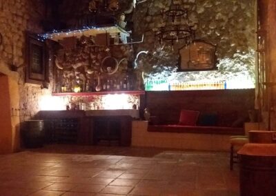 Cuenta con la capacidad de ofrecer servicios de catering en un ambiente tranquilo e íntimo. Durante el verano, se puede disfrutar de comidas bajo una pérgola exterior para hasta 17 personas, mientras que el Salón Medieval interior permite eventos con música y baile para un máximo de 17 personas, con horario limitado.
