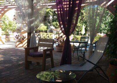 Cuenta con 2,000 metros cuadrados de jardines, incluyendo una piscina exterior con jacuzzi, abierta de 9 a 21 horas desde el 30 de mayo hasta el 15 de octubre. Una pérgola exterior de 200 metros cuadrados está disponible para comidas de verano y eventos. Además,contamos con un porche estilo chillout para relajarse.