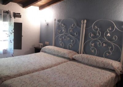 Se trata de una casa rural para un total de 7 personas distribuidas en 4 dormitorios dobles. Tres con cama de matrimonio y otro con dos camas individuales Dos de las habitaciones tienen una cama de matrimonio y las otras dos, están formadas por dos camas individuales.