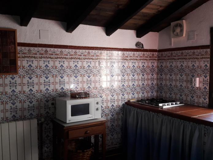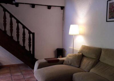 Su interior está distribuido en dos plantas, situándose en la planta baja un salón-comedor, una cocina equipada con todos los electrodomésticos y utensilios necesarios, dos habitaciones dobles y un cuarto de baño completo. En la segunda planta se encuentran en resto de las otras dos habitaciones y un segundo cuarto de baño completo.
