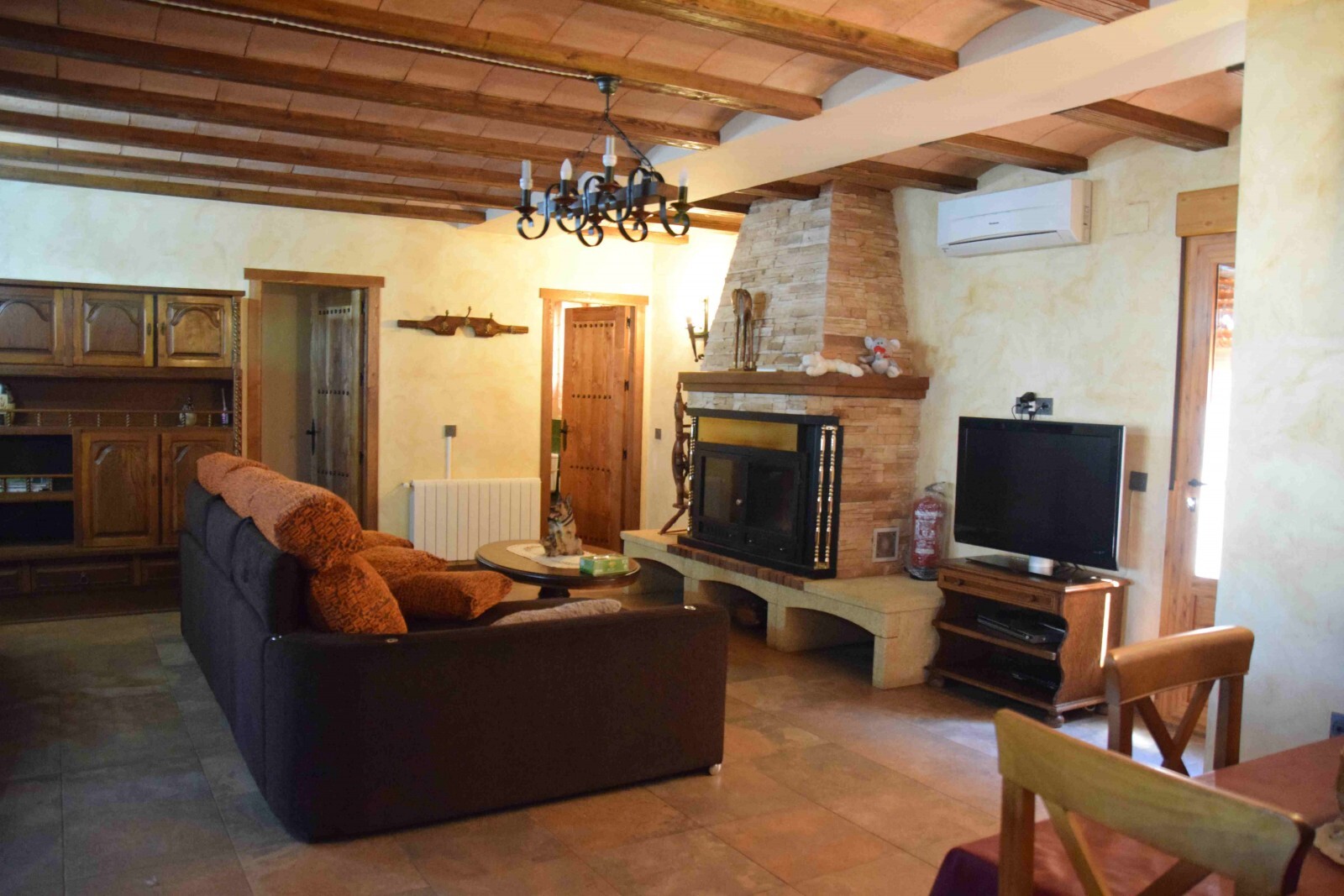 En la 1ª planta se encuentra un fantástico salón con una TV de 50″ con canal plus y juegos para niños (cartas, parchis, damas…). También disponéis de una amplia mesa para poder desayunar, comer, cenar o jugar en familia.