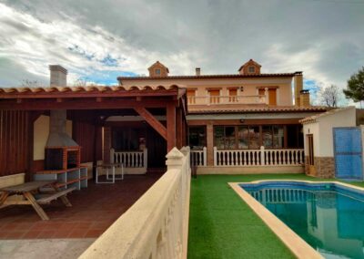 La casa dispone de 2 plantas y un jardín de 1.200 m², con piscina, jardín, barbacoa, horno de leña, etc… Aquí los más pequeños y mascotas podrás disfrutar al máximo.