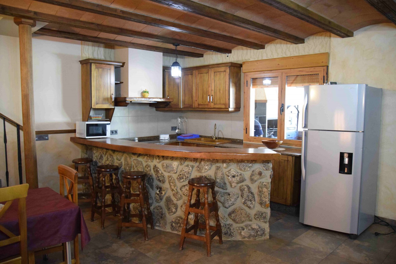 Encontraréis una cocina con barra americana totalmente equipada con lavavajillas, horno, micoondas,etc.)