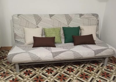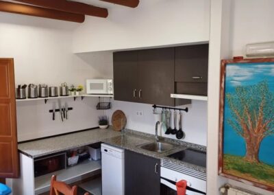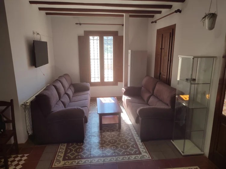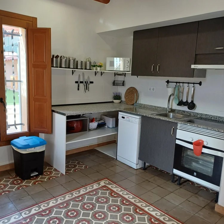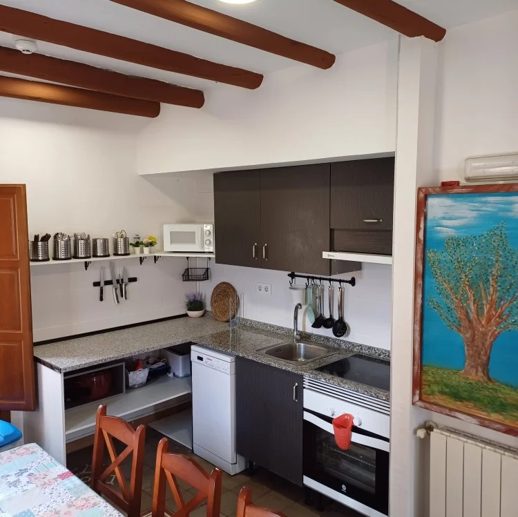 Las estancias interiores están pensadas para el descanso y la convivencia. La vivienda dispone de un acogedor salón comedor, una sala de estar con televisión de pantalla plana y sofá cama de dos plazas, y una cocina equipada con horno, ideal para preparar comidas caseras y disfrutar de largos momentos compartidos alrededor de la mesa.