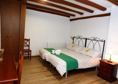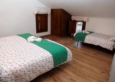 Con capacidad para alojar cómodamente hasta 16 personas, Casa Rural – El Chopo Cabecero se distribuye en tres plantas y cuenta con 6 amplios dormitorios, repartidos en dos habitaciones con cama de matrimonio, dos habitaciones con dos camas individuales y dos habitaciones con tres camas individuales, lo que permite una distribución equilibrada y práctica para familias numerosas o grupos de amigos. El alojamiento dispone además de 3 baños completamente equipados, uno de ellos adaptado para personas con movilidad reducida, aportando un plus de accesibilidad y confort durante la estancia.