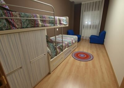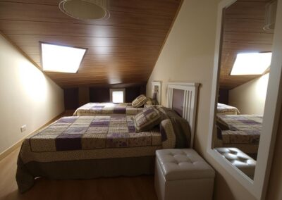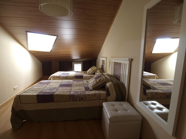 • Dos habitaciones dobles con camas de 105cm, una habitación doble con camas de 90cm, una habitación triple con dos camas de 105cm y una cama de 90cm.