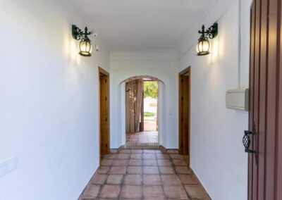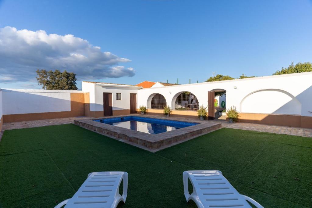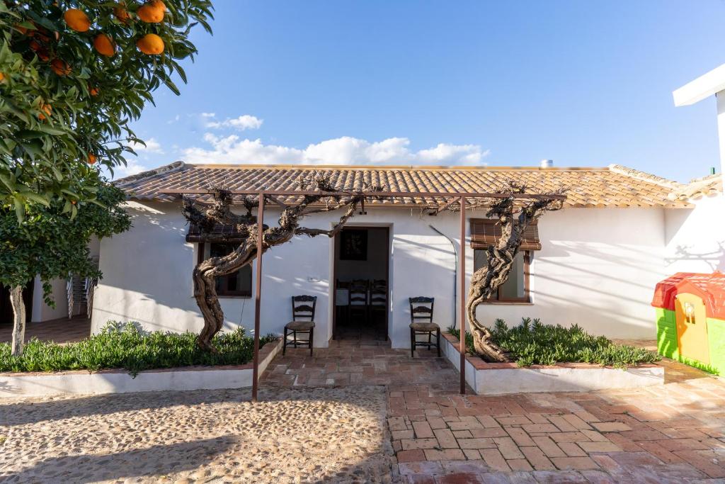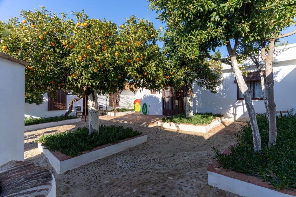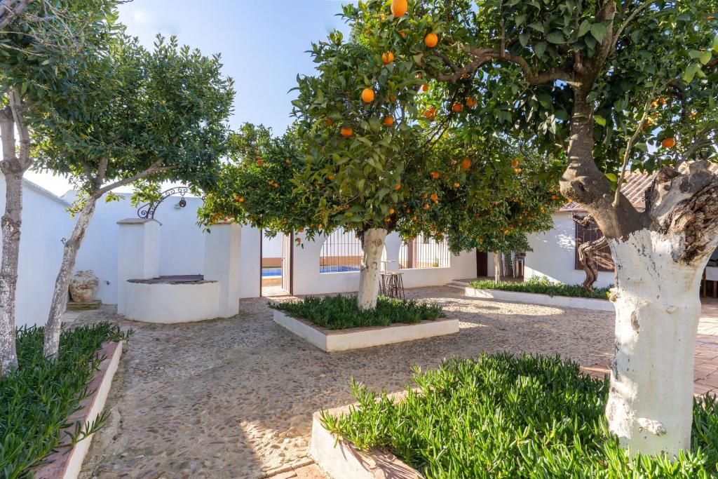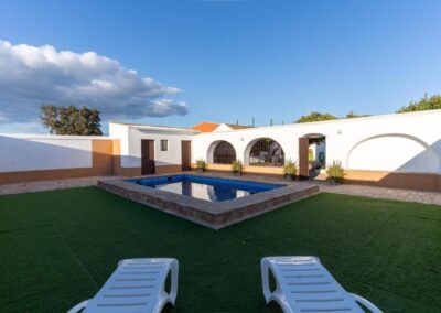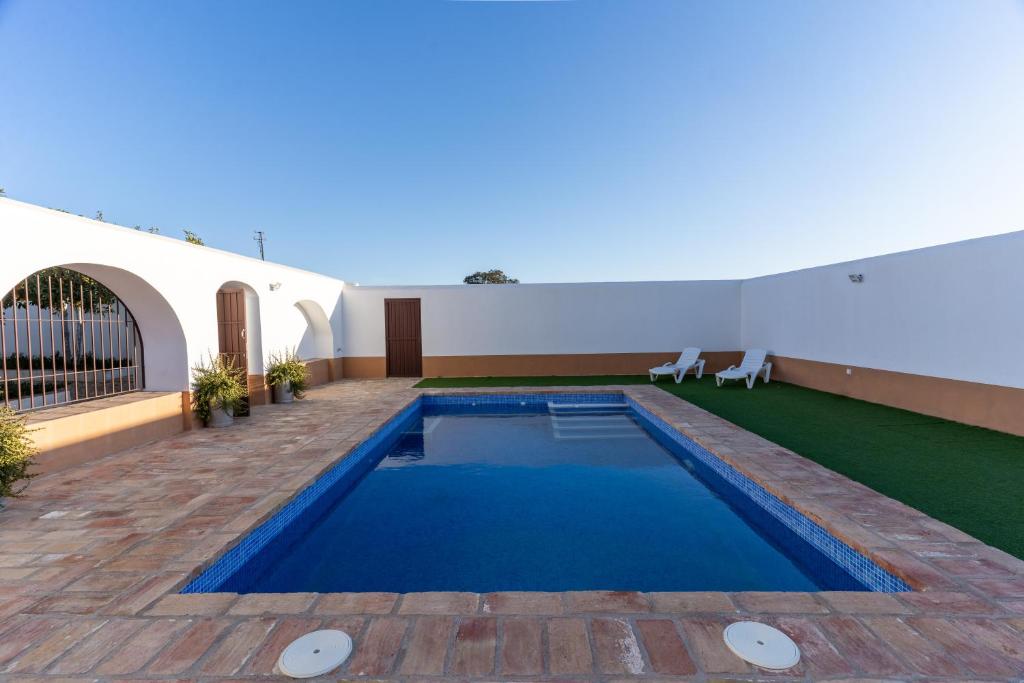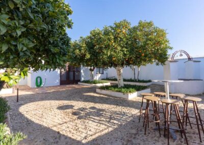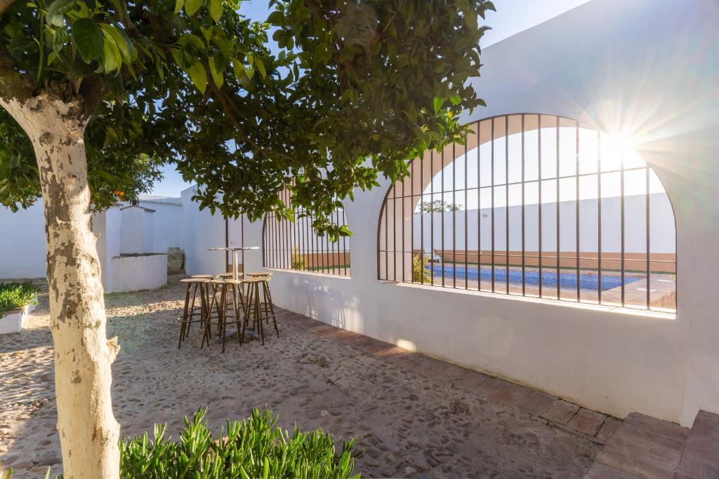El exterior de El Nogal es un auténtico oasis de tranquilidad. Su piscina privada, completamente vallada para mayor seguridad, invita a refrescarse bajo el sol andaluz, mientras que las dos terrazas ofrecen el espacio perfecto para relajarse o disfrutar de una cena al aire libre. La zona de barbacoa equipada con rosco paellero y botellero promete veladas inolvidables, rodeadas del aroma de los naranjos y parras antiguos del amplio patio tradicional, cuyos frutos pueden degustarse durante la estancia.