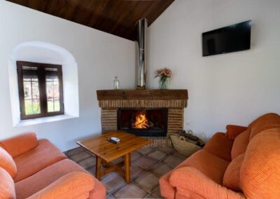El alojamiento cuenta con aire acondicionado, calefacción, chimenea de leña, Wi-Fi, y zona de aparcamiento dentro de una parcela vallada, ideal para quienes viajan con mascotas, ya que los amigos peludos pueden moverse con total libertad y seguridad. El acceso se realiza fácilmente por un carril de tierra de unos 200 metros desde la carretera principal.
