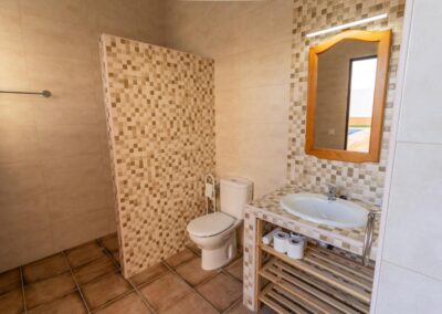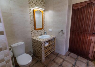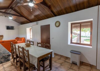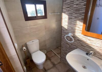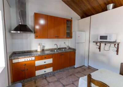 Con capacidad para 8 personas, esta encantadora casa de una sola planta combina el estilo rústico andaluz con todas las comodidades modernas. Dispone de tres acogedores dormitorios —uno con cama de matrimonio y dos con literas—, y dos baños completos con ducha, diseñados para ofrecer la máxima comodidad. El salón con chimenea crea un ambiente cálido y relajante, perfecto para las noches más frescas, mientras que la cocina integrada en el comedor está totalmente equipada y cuenta con una amplia mesa donde disfrutar de comidas en buena compañía.