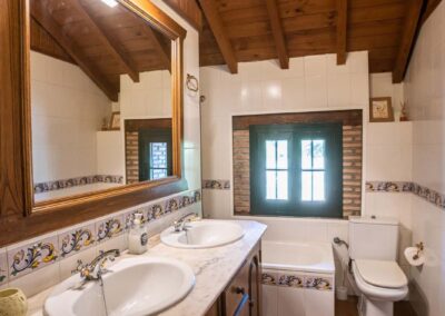 Cuenta con 3 habitaciones dobles, 2 wc completos, cocina, cenador acristalado, salón-comedor, chimenea, aire acondicionado, jardín privado, juegos, wi-fi y parking privado para 2 vehículos.