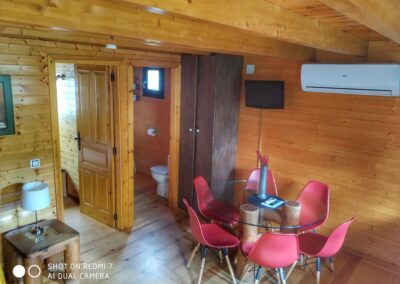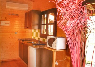 La decoración de las casitas se ha cuidado con esmero, presentando un mobiliario rústico, funcional y de diseño exclusivo. El objetivo es brindar un ambiente acogedor y confortable, contribuyendo a que los días de ocio sean lo más placenteros posible.