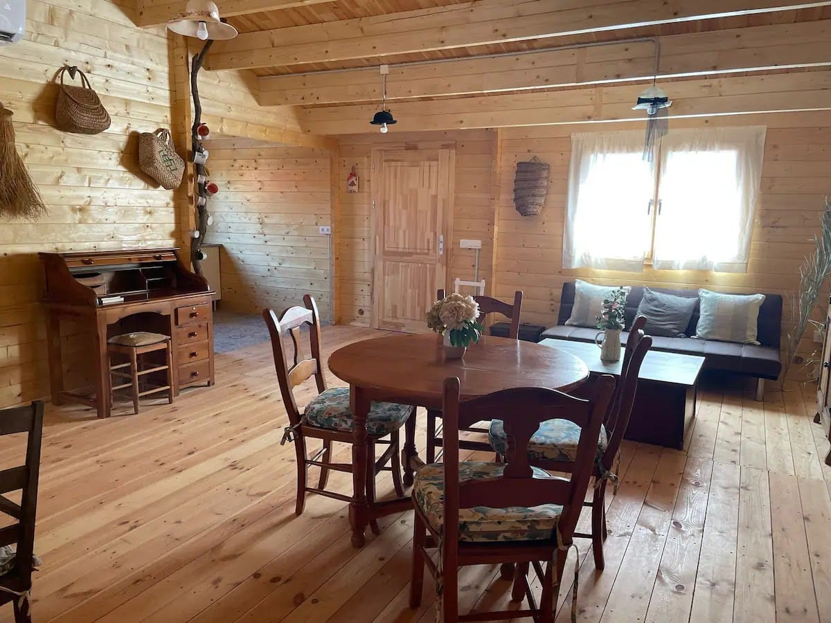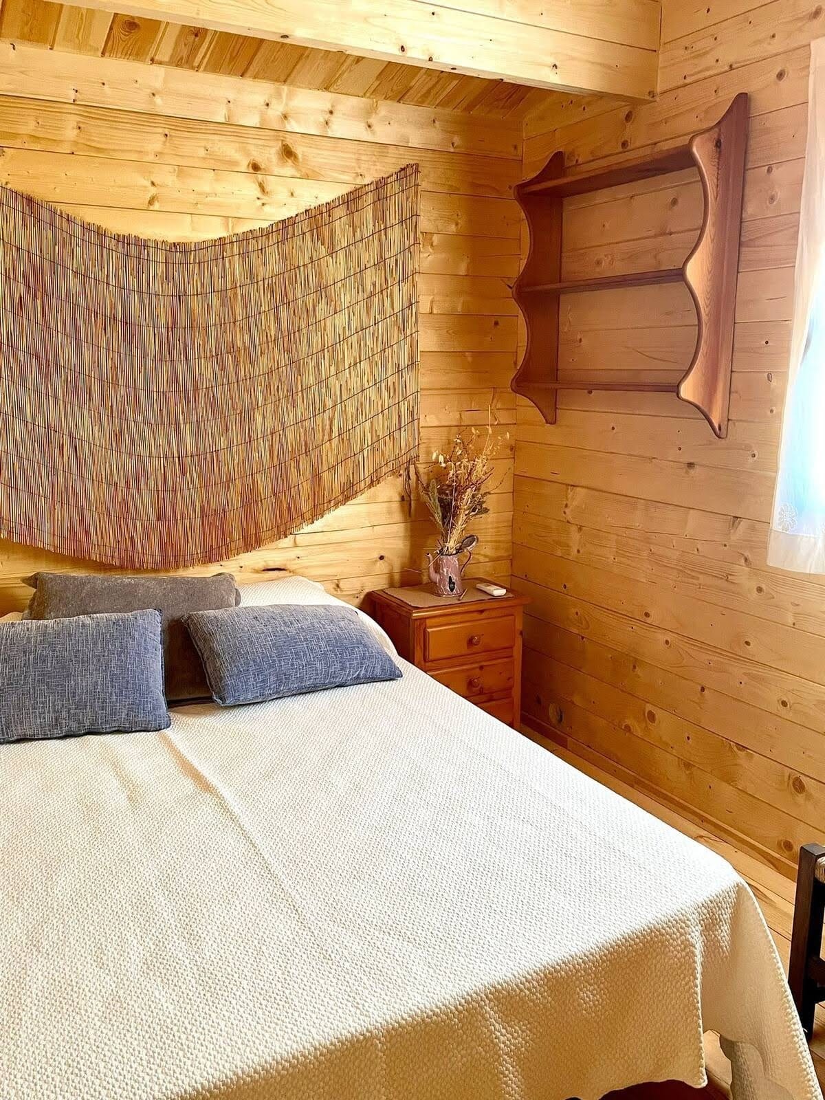 Entre Ciervos y Cervantes es una preciosa cabaña de madera con capacidad máxima de 6 personas. dispone de cocina completa, lavadora, salón comedor con TV plana, wifi gratuita y parking.