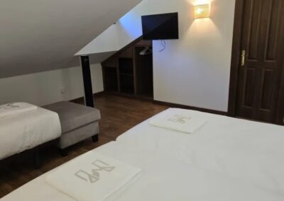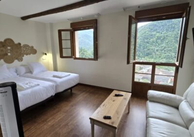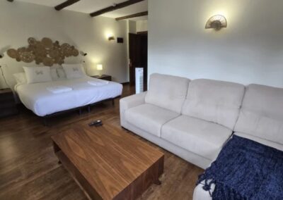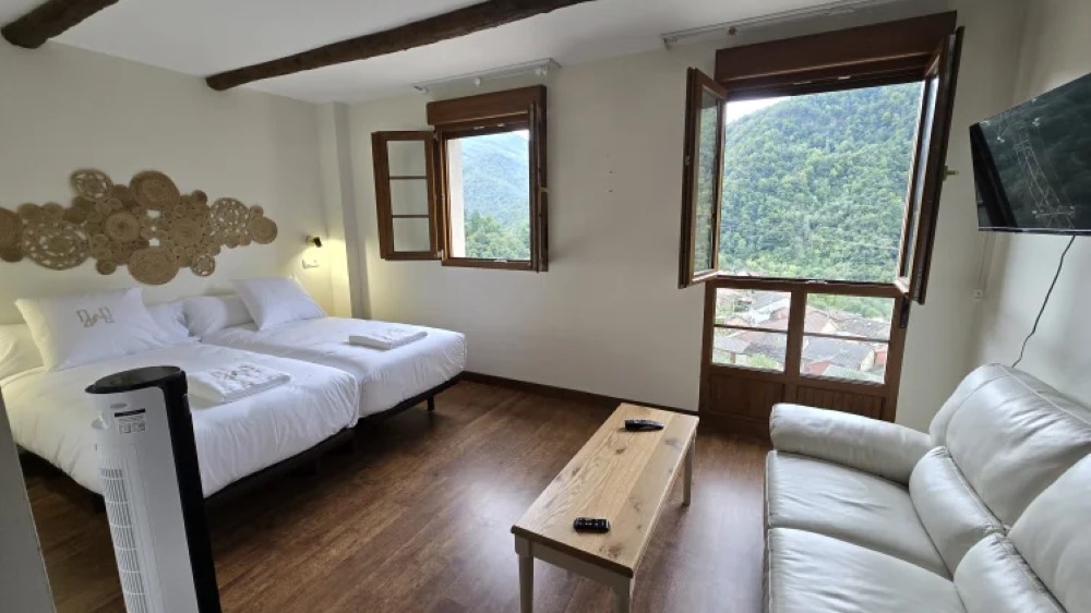Con una capacidad para hasta 24 personas, el hotel ofrece una variedad de habitaciones diseñadas para garantizar el máximo confort. Desde la Suite con vistas a la montaña, perfecta para una escapada romántica, hasta habitaciones familiares ideales para grupos, cada espacio ha sido decorado con mimo y elegancia. El alojamiento cuenta con 9 habitaciones dobles con baño privado.