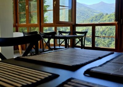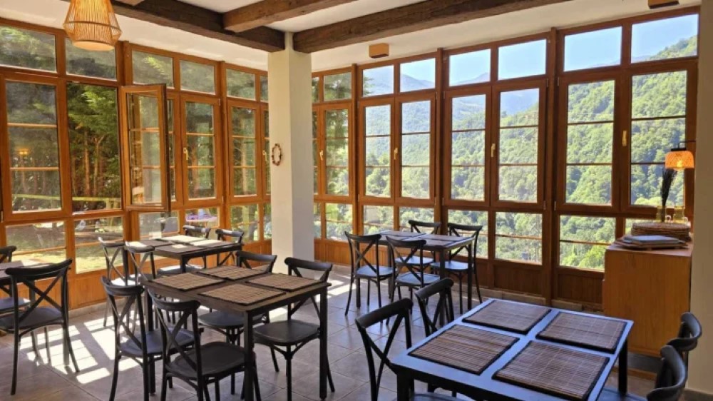 El hotel dispone de restaurante propio, donde se sirve cocina casera elaborada con productos de proximidad. Cuentan con ganadería criada en libertad en los montes del valle, y ofrecen especialidades como el cabrito bermeyo y el buey casín certificado. Las verduras frescas provienen en su mayoría de su propia huerta, y pueden degustarse en el comedor o en la terraza panorámica, con vistas impresionantes del entorno montañoso. Una experiencia gastronómica auténtica que redondea una estancia inolvidable.
