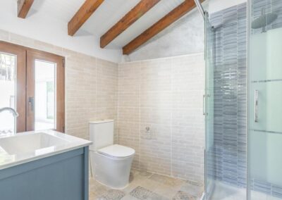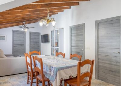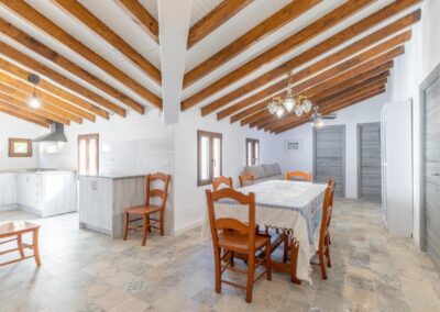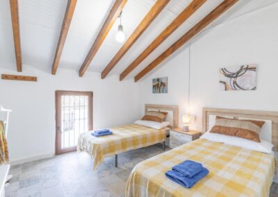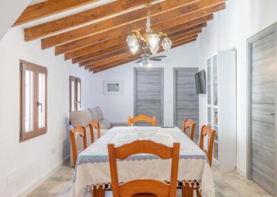 La casa cuenta con tres habitaciones dobles, dos con cama de matrimonio de 150cm cada una y la otra con dos camas de 90 cm. Decoradas con un estilo acogedor que invita al descanso y aire acondicionado para un máximo confort. Además, dispone de dos baños completos, un amplio salón-comedor con cómodas zonas de descanso y una cocina equipada con frigorífico, microondas, cafetera Nespresso e italiana,