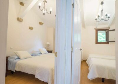 La vivienda cuenta con 3 dormitorios dobles, cada uno con dos camas individuales, ropa de cama y mobiliario pensado para tu comodidad, además de 2 cuartos de baño completos y un aseo, todos equipados con ducha y juegos de toallas para los huéspedes. Cada detalle está diseñado para ofrecer confort y funcionalidad durante toda la estancia. Tambíen disponemos de un sofa-cama.
