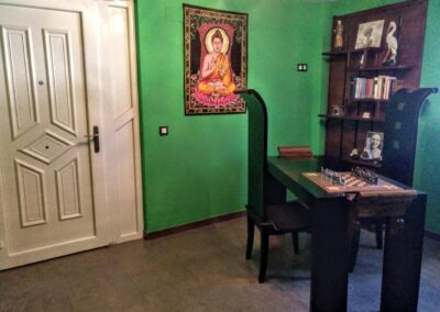 En la planta de abajo se encuentra la sala de actividades (se han realizado actividades de yoga con espacio para 12 personas), comedor, cocina totalmente equipada, baño con ducha hidromasaje y jardín privado.