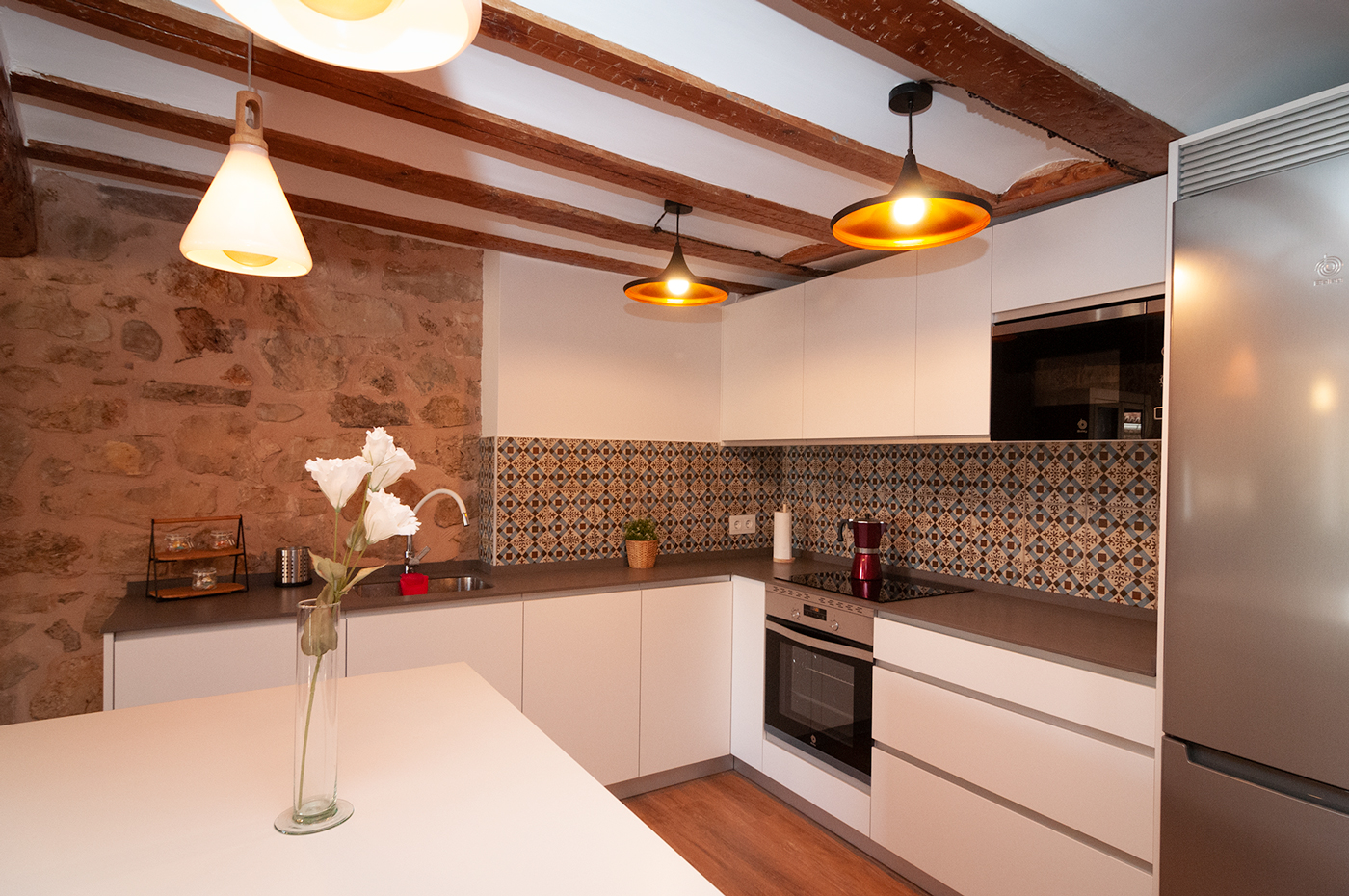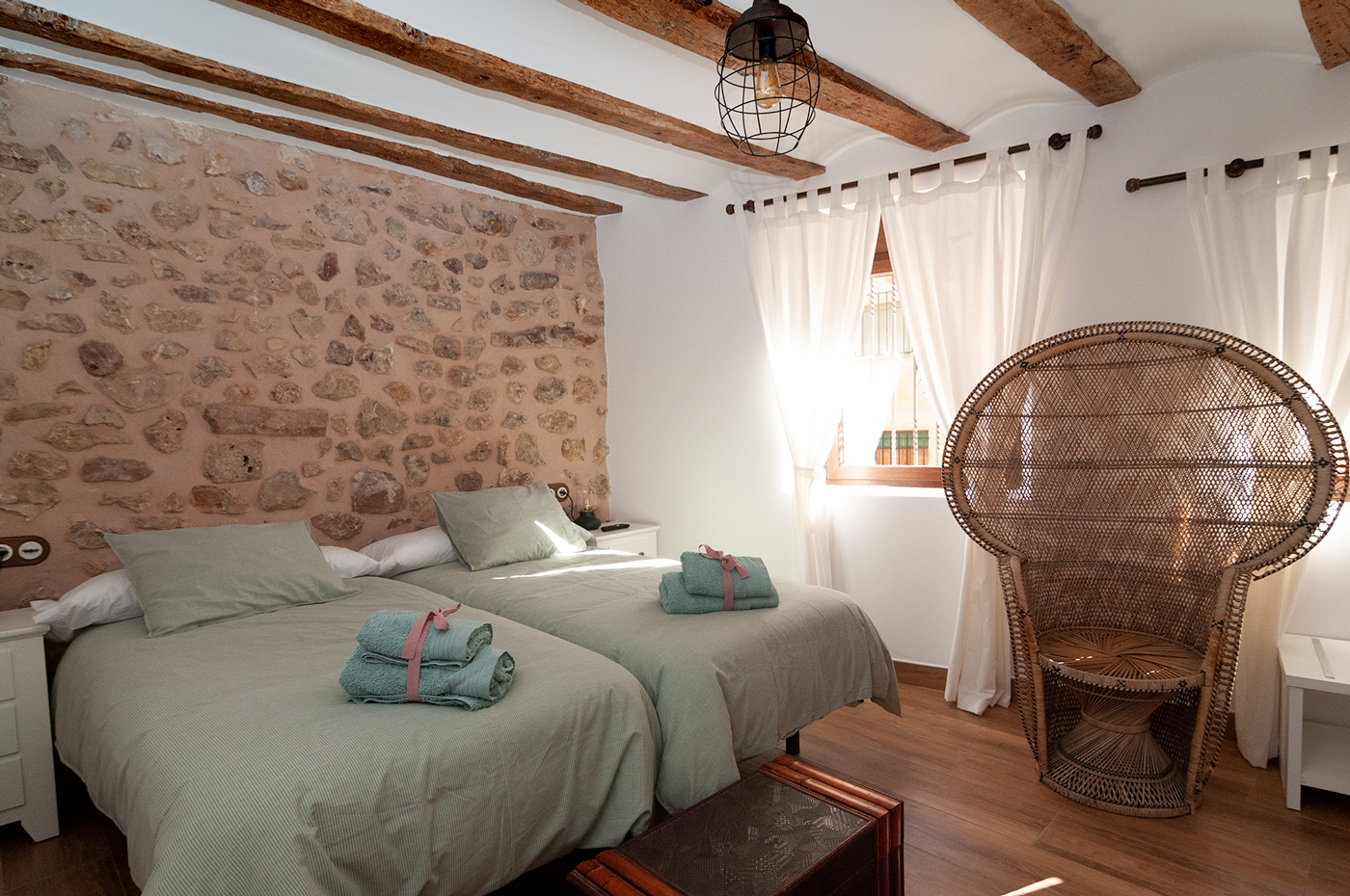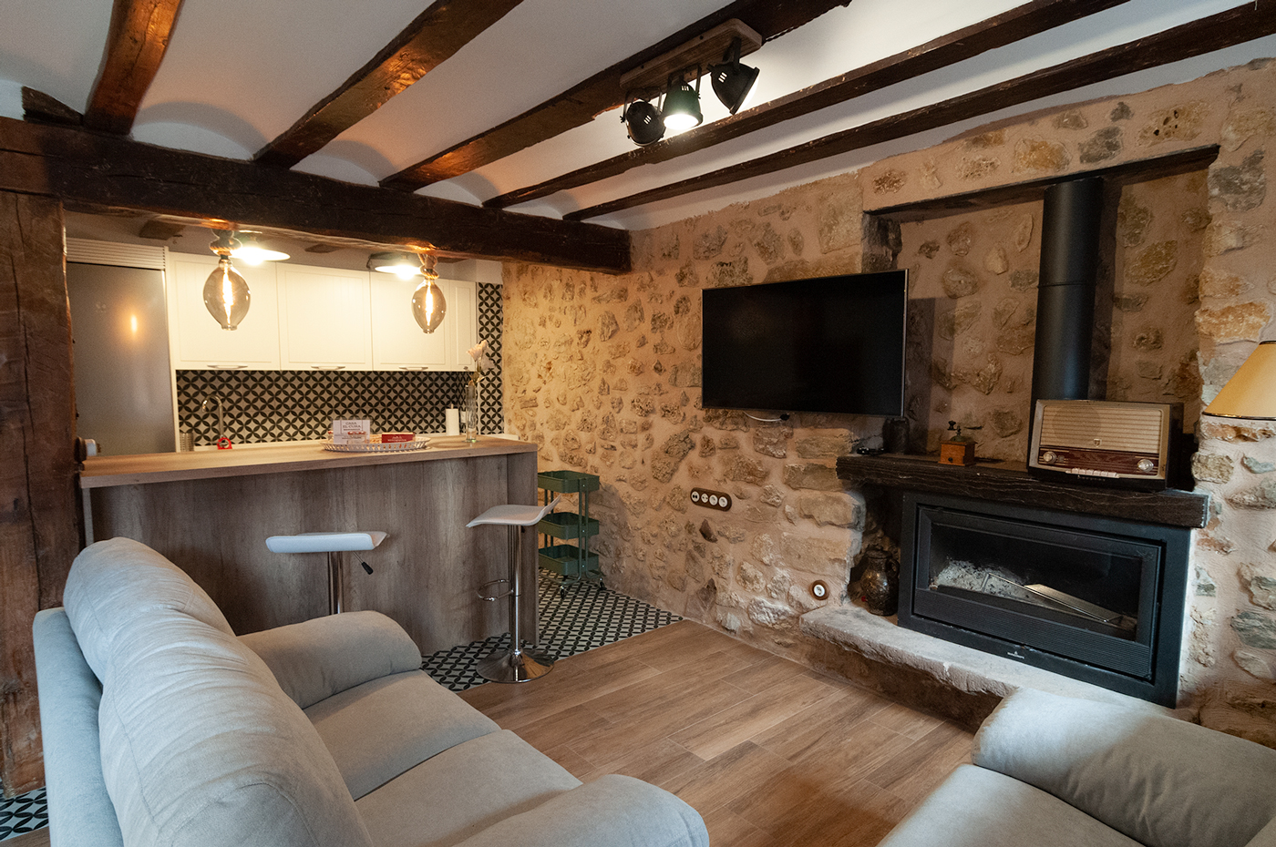 Combina el estilo rústico que le dan los materiales tradicionales como la piedra y la madera con todas las comodidades modernas en todas sus estancias.