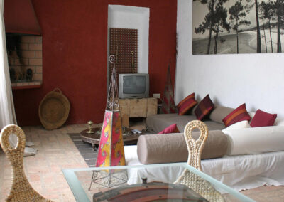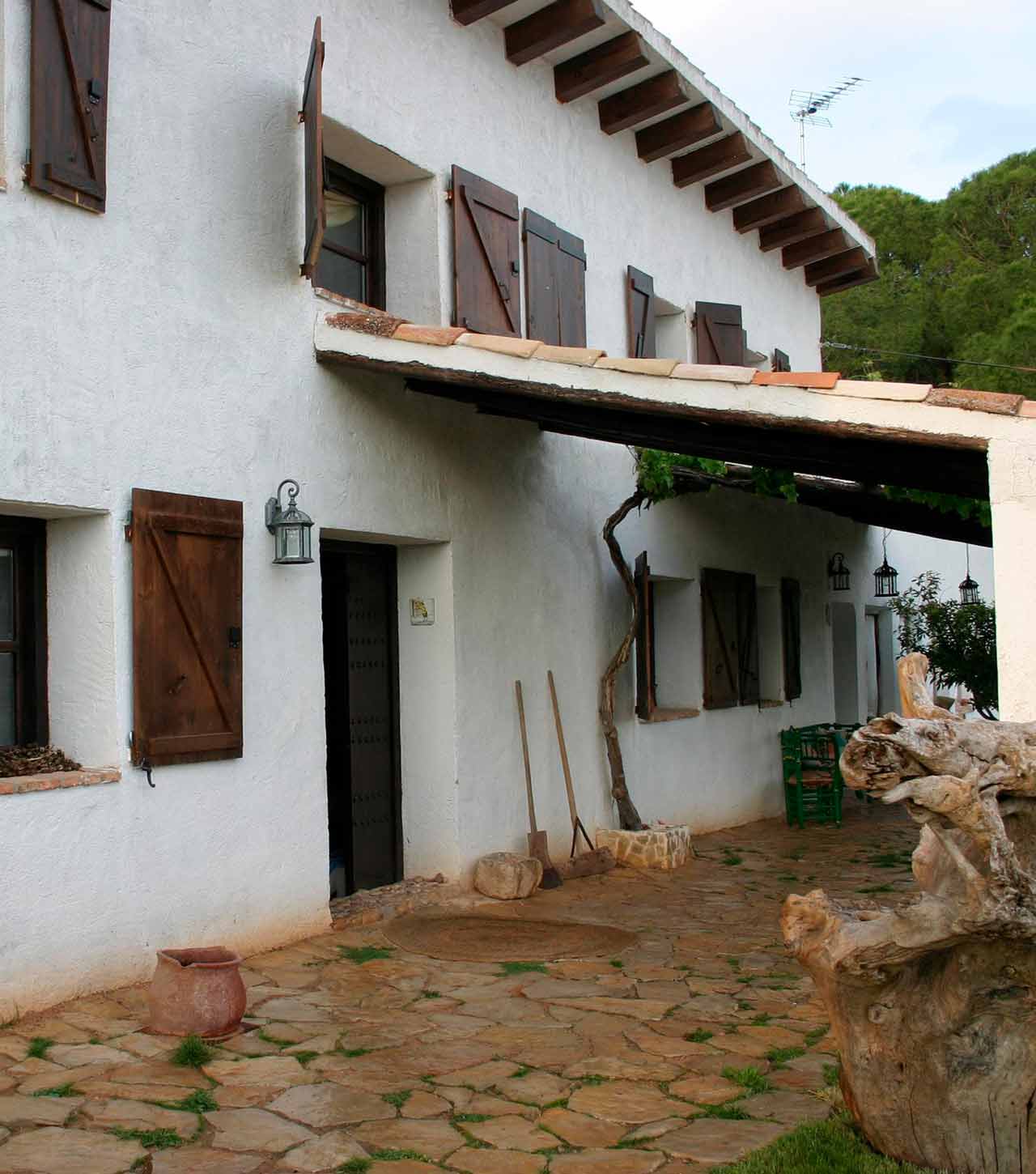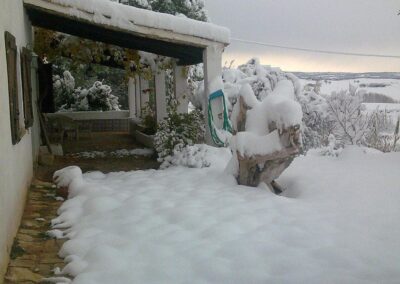 Con buena dosis de intuición decorativa, ayudada de muebles y complementos recuperados del pasado la granja se ha recuperado para el turismo rural, situada en una finca (con huerta, pinar, almendros… y el pueblo al fondo), asegurando el ambiente más íntimo del que poder disfrutar, donde la tierra descansa silenciosa después de la cosecha.