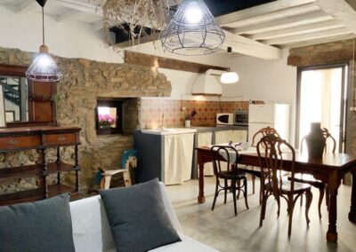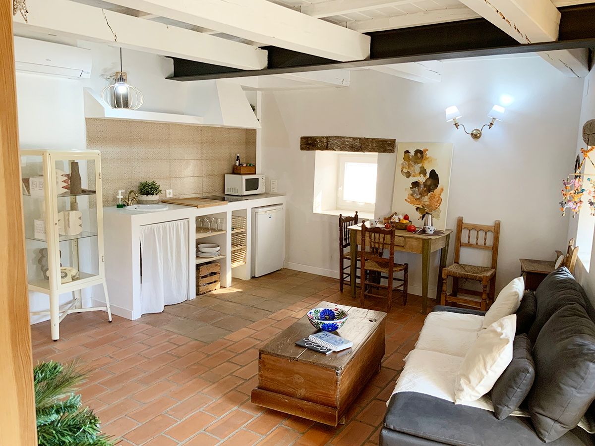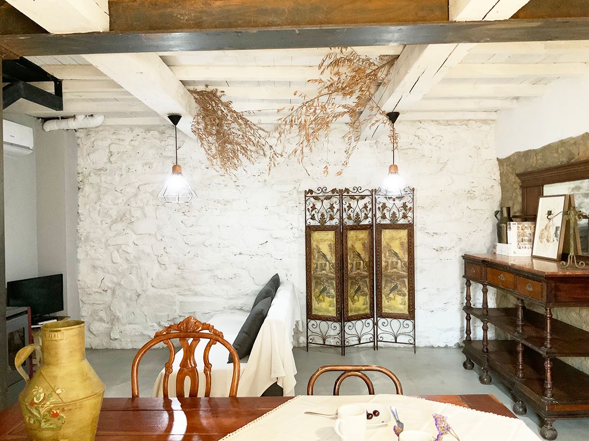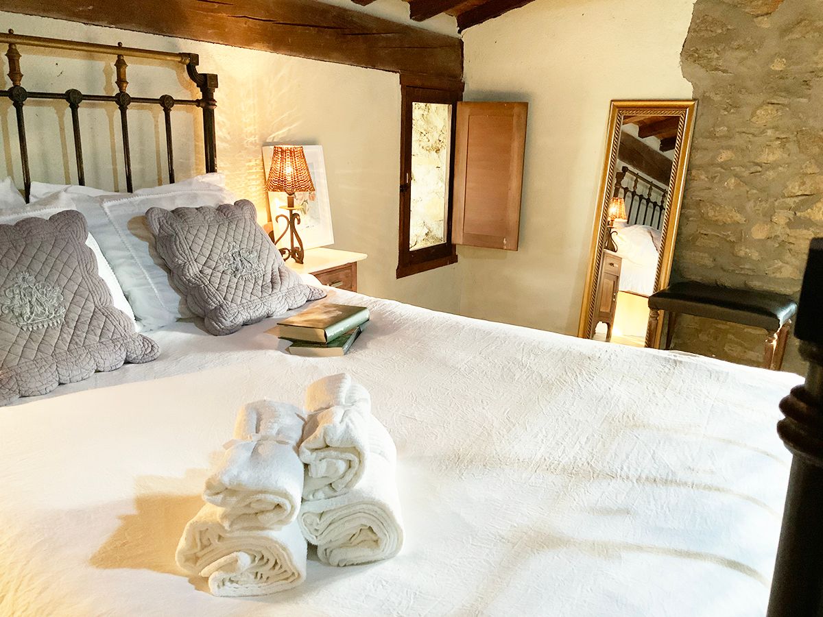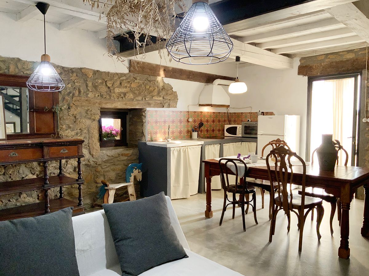 La Grulla Gris, una casa muy especial de paredes de piedra que conserva su espíritu, humilde y sencillo. Dividida en dos plantas, cada una de más de veinte metros, cocina comedor en la primera, con una mesa de madera muy amplia, la cocina equipada con todo lo necesario para cocinar tus delicias, el fregadero de porcelana de dos senos, techos pintados en blanco, una deliciosa estufa de pellet para convertirla en tu hogar en invierno y aire acondicionada para soportar los calores del verano.