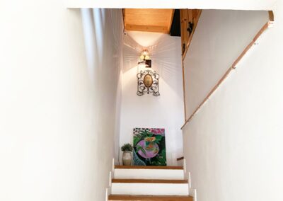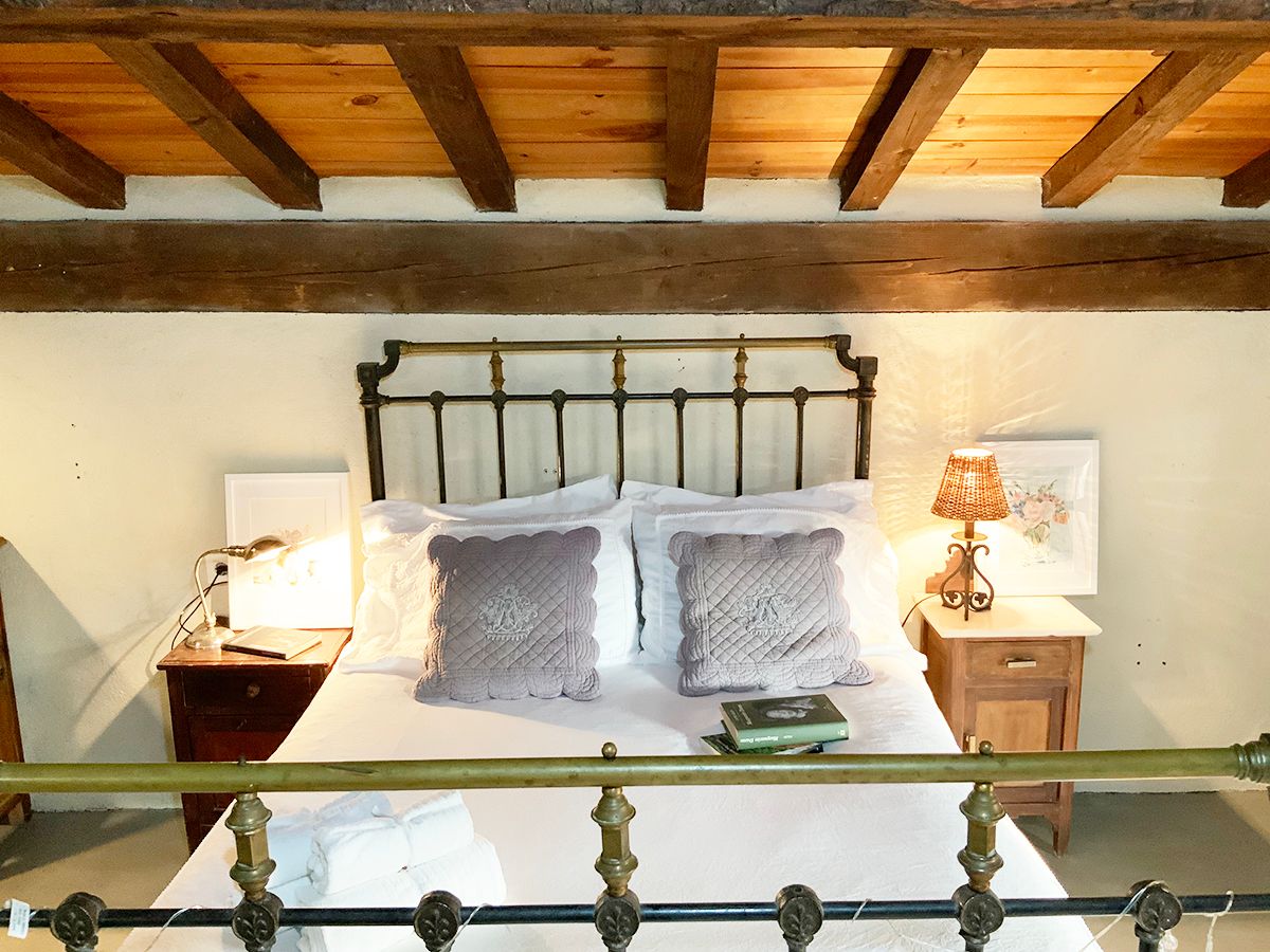 En la segunda planta, abuhardillada y totalmente pintada de blanco con vigas de hierro negro, una cama de 1,50m donde podras elegir entre almohadas duras o blandas y un colchón comodísimo para descansar y reencontrarse. Con entrada totalmente independiente, desde el exterior.