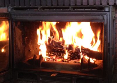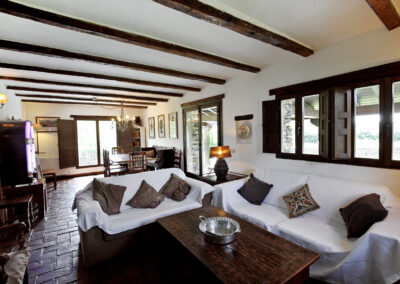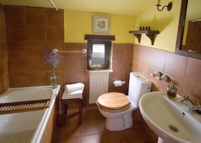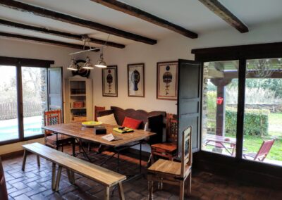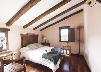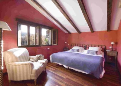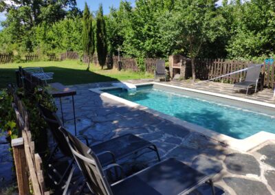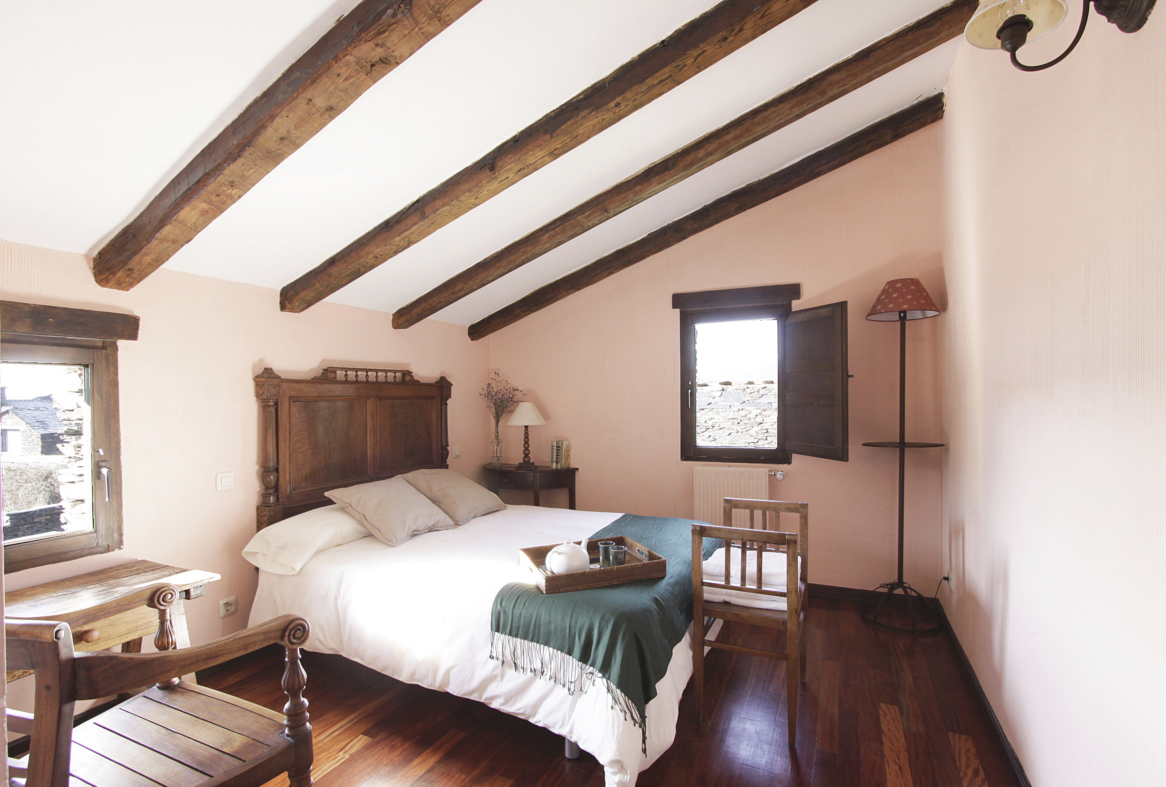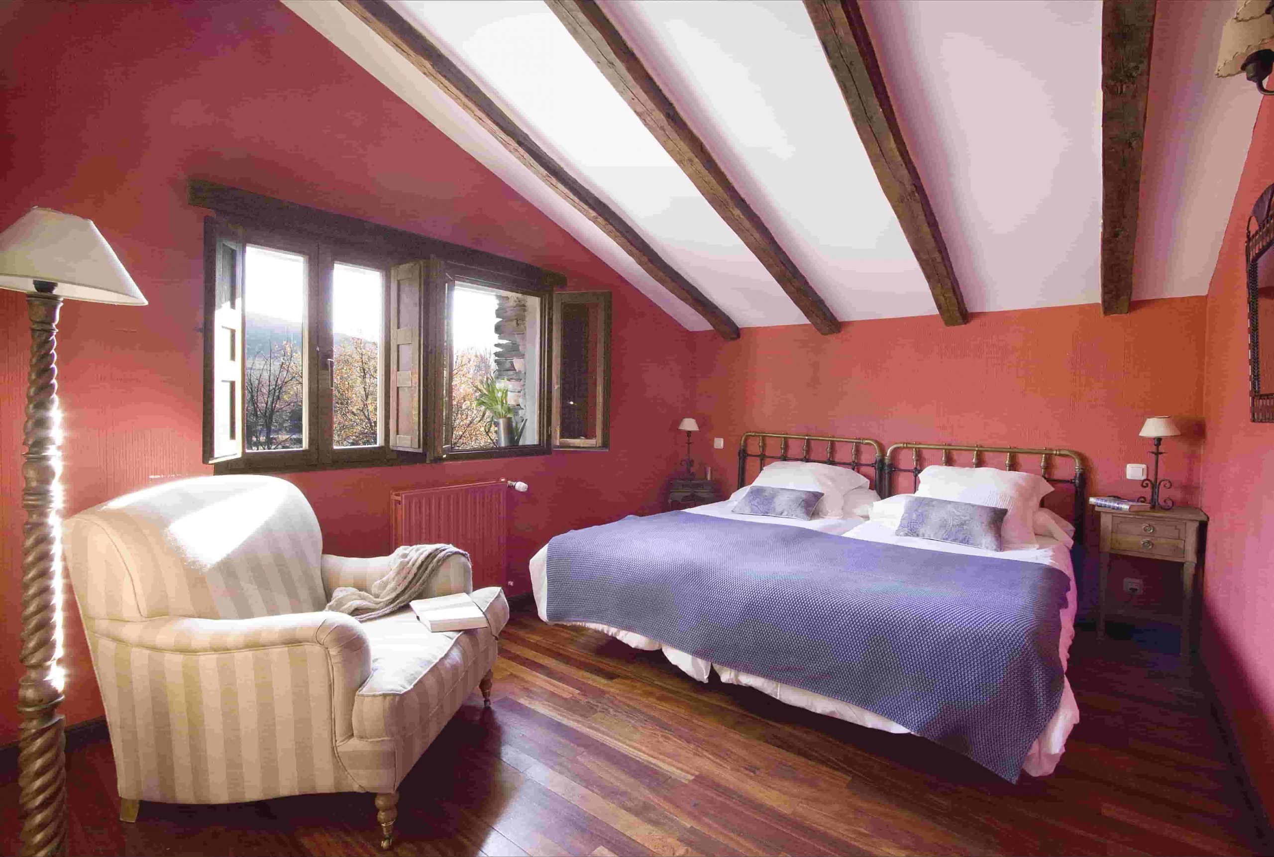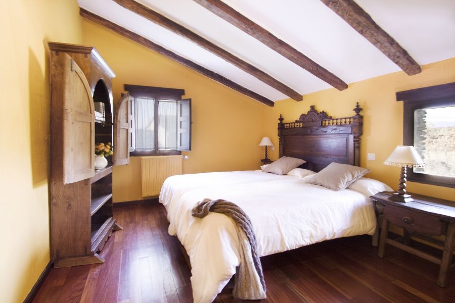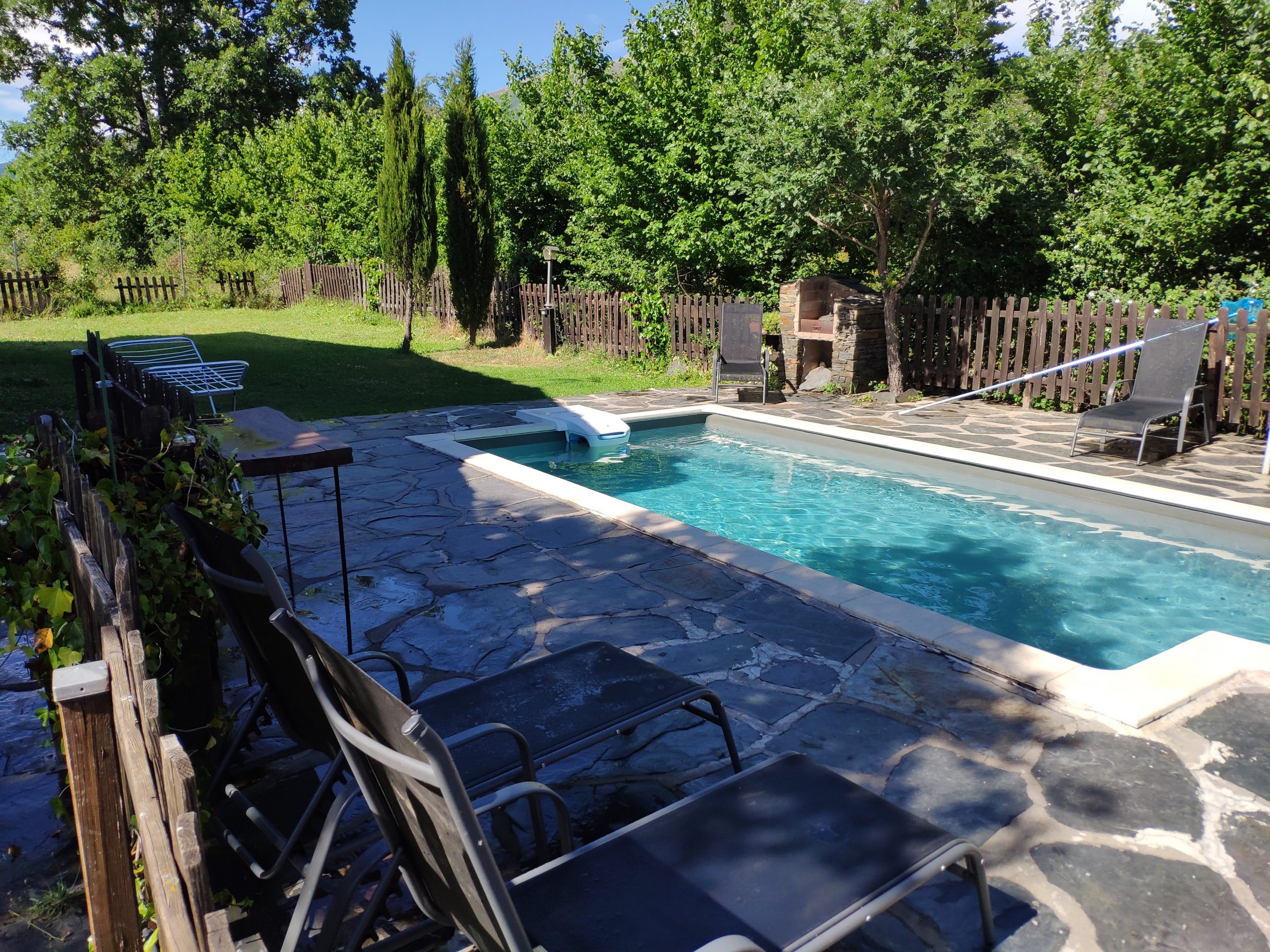 Disponemos de 6 dormitorios dobles, 2 de ellos de matrimonio y 4 con dos camas, todos ellos con baño completo; las zonas comunes que ofrece la casa son: recibidor, cocina completa, salón-comedor con chimenea, aseo, porche y terraza, jardín con piscina y barbacoa, y aparcamiento privado. La decoración de la casa aporta un ambiente acogedor a todas las estancias, estando cada dormitorio personalizado.