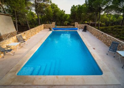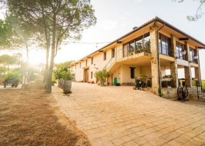 En la finca de La Posada de Vitis también se puede disfrutar de su pinar que rodea la piscina exclusiva para los huéspedes, una enorme barbacoa, barras de ejercicio físico, canasta de baloncesto, portería de fútbol sala y por supuesto su columpio y casita en la encina centenaria situada en medio del viñedo.