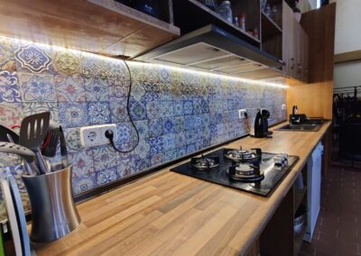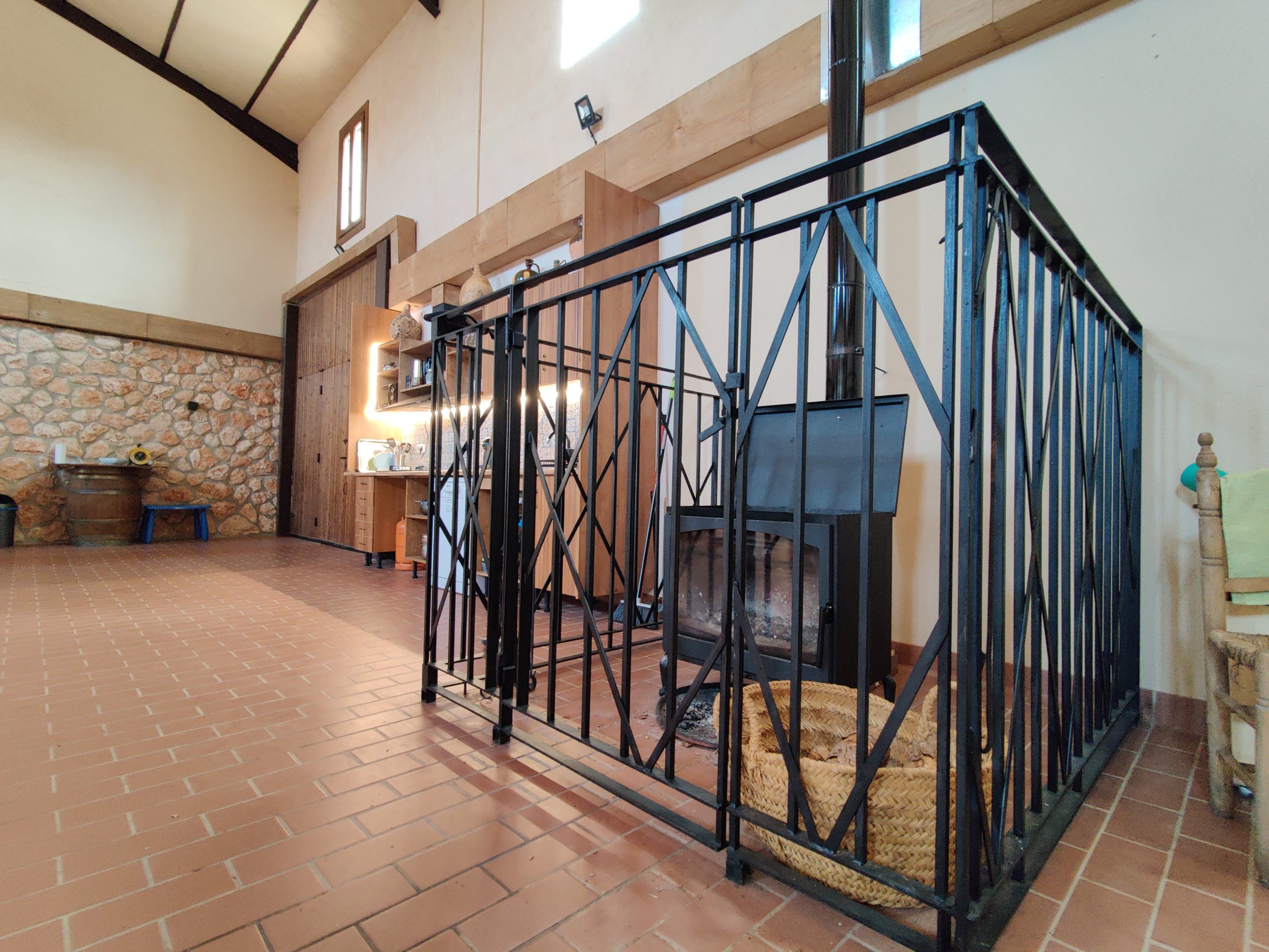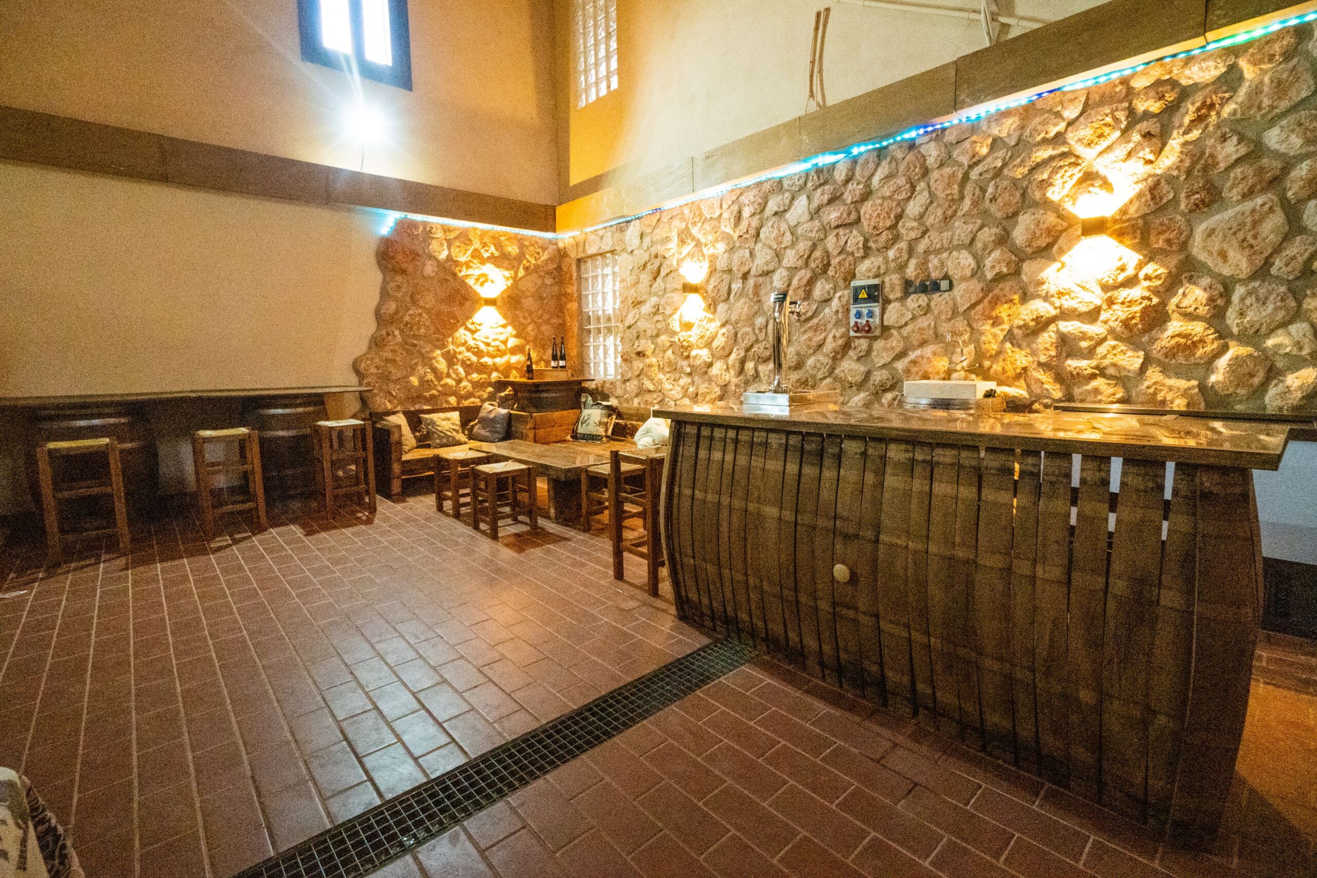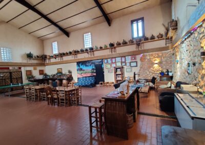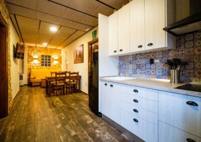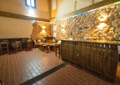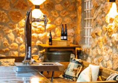 Así como un salón de 150 mts cuadrados para disfrutar de vuestra estancia, con mesa de pinpon, otra cocina, lavavajillas, una barra con grifo de cerveza, zona de sofás de madera, etc. y que es independiente de la zona de descanso.