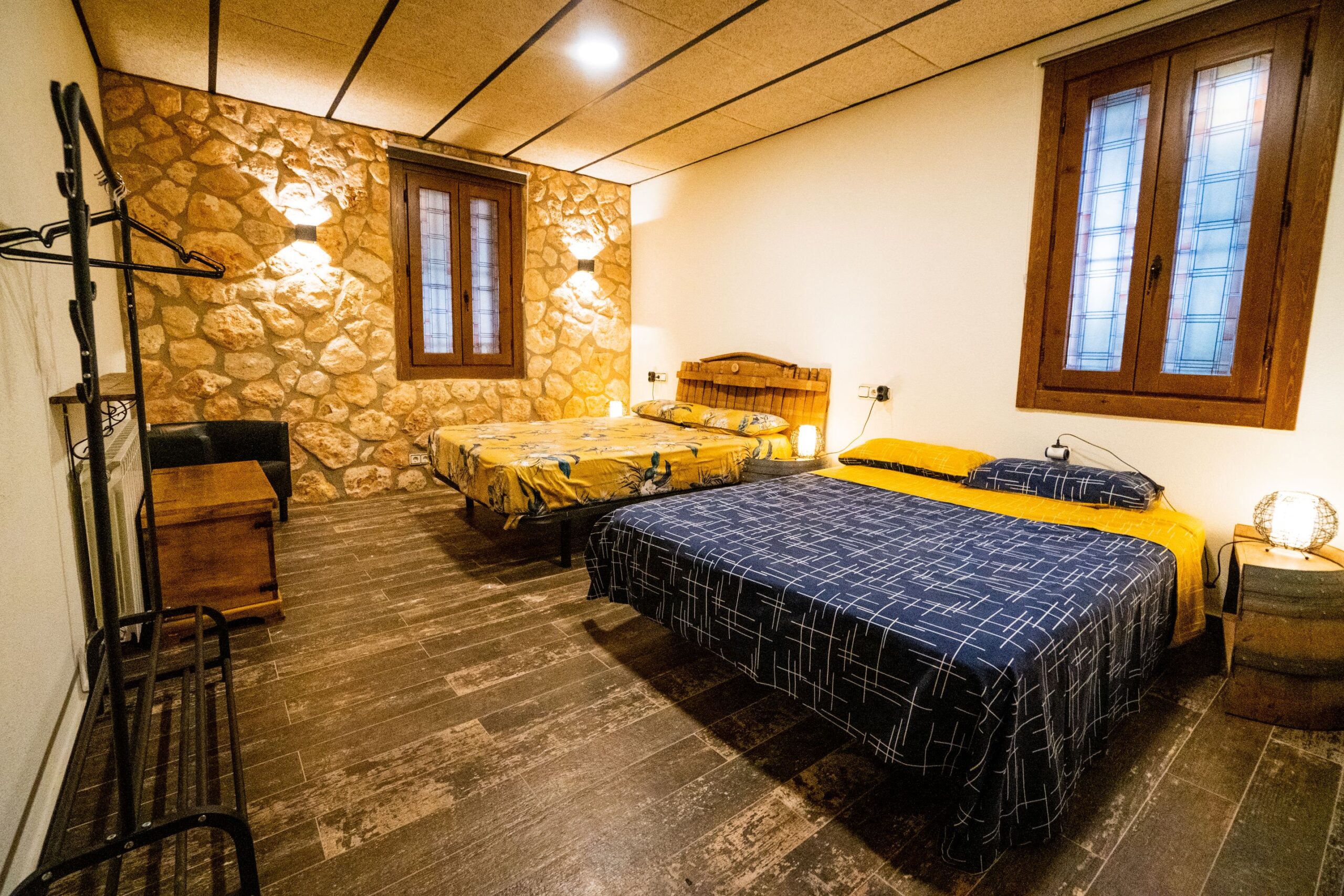 La primera habitación es cuádruple con dos camas de 150 cm y que cabe una cama supletoria adicional de 90 cm.