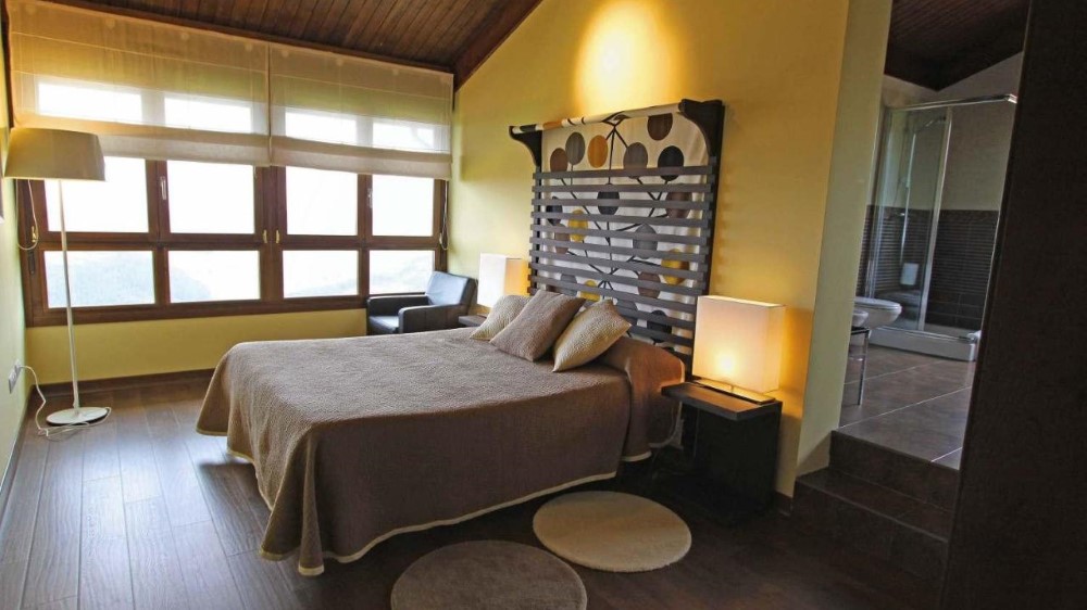 Entre sus opciones, destaca el adosado con bañera de hidromasaje, una casa de 3 dormitorios para 5-7 personas, perfecta para familias que buscan privacidad y comodidad. También puedes optar por el adosado estándar, igualmente espacioso y moderno, con capacidad para el mismo número de huéspedes. Si viajas en grupo o en familia numerosa, la Casa grande es ideal: un chalet independiente de 6 dormitorios y hasta 13 plazas, con 5 baños en suite, gran cocina, terraza cubierta y un salón con ventanales que enmarcan el verde paisaje de Asturias. Y un apartamento para 2 personas con dormitorio principal con cama de 1,50 m, bañera de hidromasaje y baño privado. Dispone también de sala de estar con sofá cama, cocina equipada y un segundo baño completo. Cuenta con wifi, TV en ambas estancias, terraza y jardín con barbacoa.