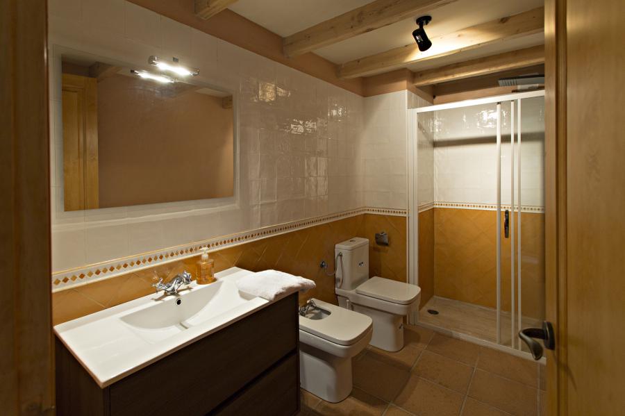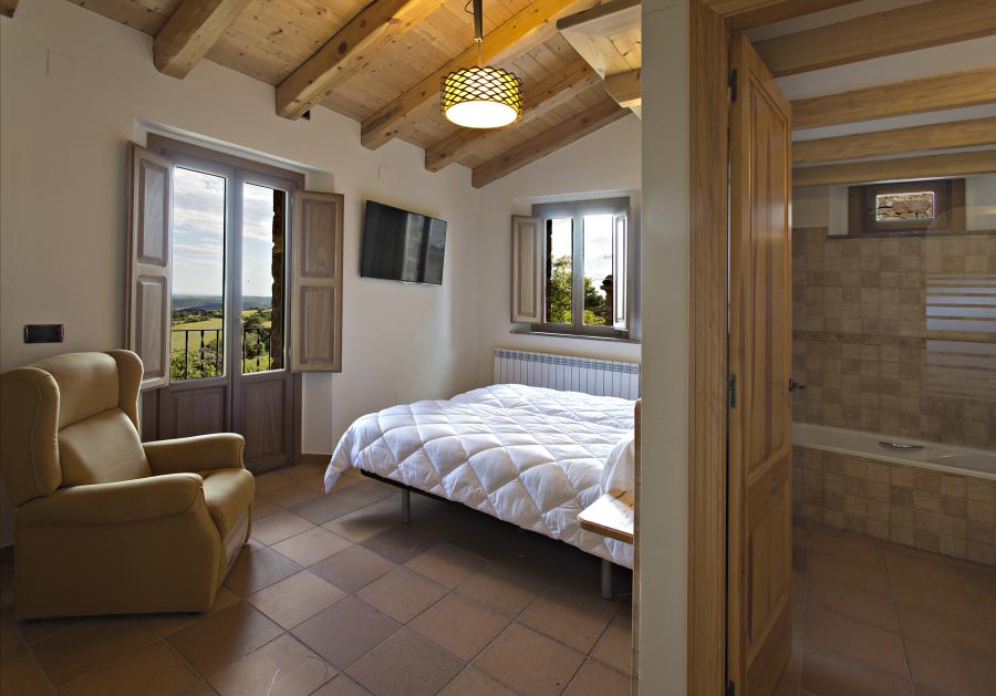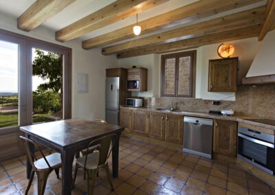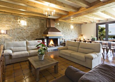 La casa se distribuye en dos plantas y cuenta con siete habitaciones dobles, todas ellas con baño privado equipado con bañera o ducha de hidromasaje. La cocina, totalmente equipada, ofrece un amplio espacio para disfrutar de comidas caseras si se prefiere. El acogedor salón-comedor, con una chimenea, brinda un ambiente cálido y acogedor, perfecto para relajarse en los días más frescos.