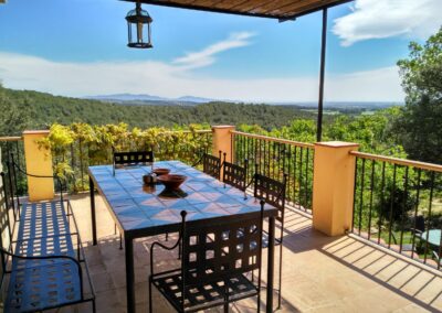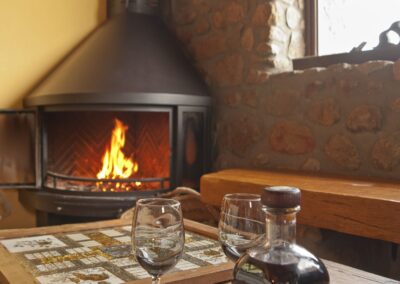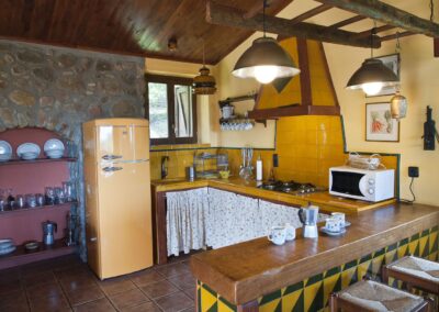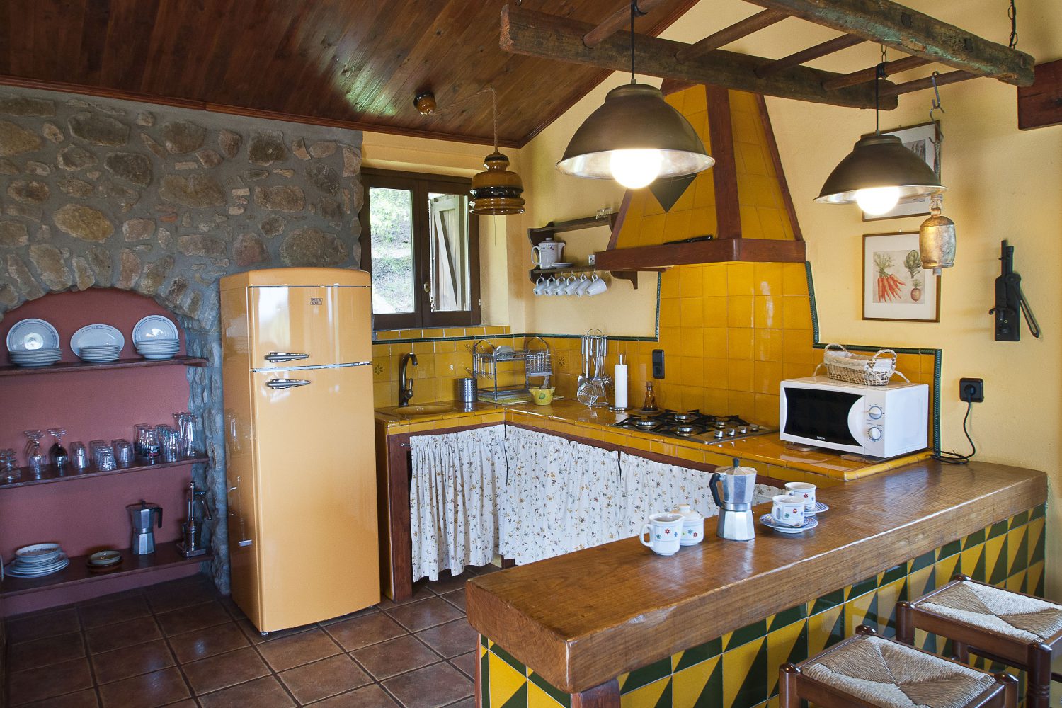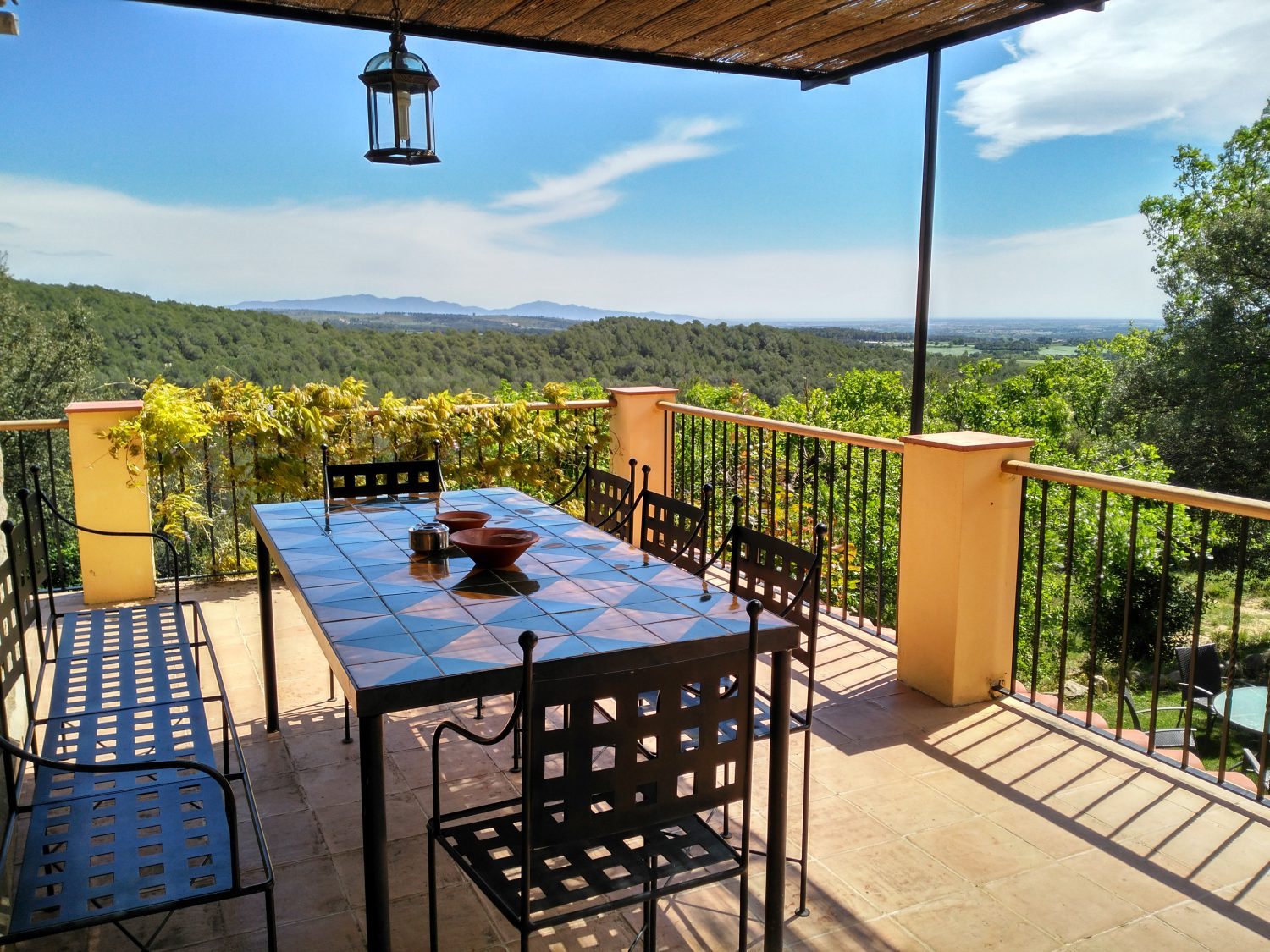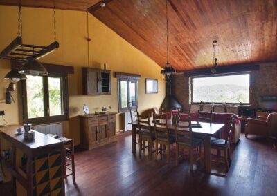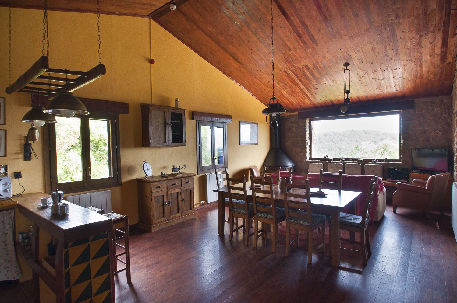 Distribuida en dos plantas, la casa cuenta con una espaciosa cocina-comedor en la planta superior, desde donde se puede contemplar una impresionante vista de la llanura del Alt Empordà y el golfo de Roses a través de un amplio ventanal. Además, dispone de una acogedora chimenea y una cocina completamente equipada. Desde el salón se accede a una terraza-mirador, ideal para contemplar amaneceres sobre el mar Mediterráneo o simplemente relajarse y disfrutar del entorno natural.