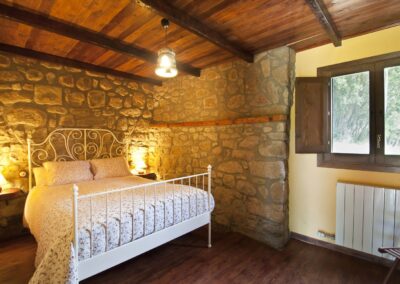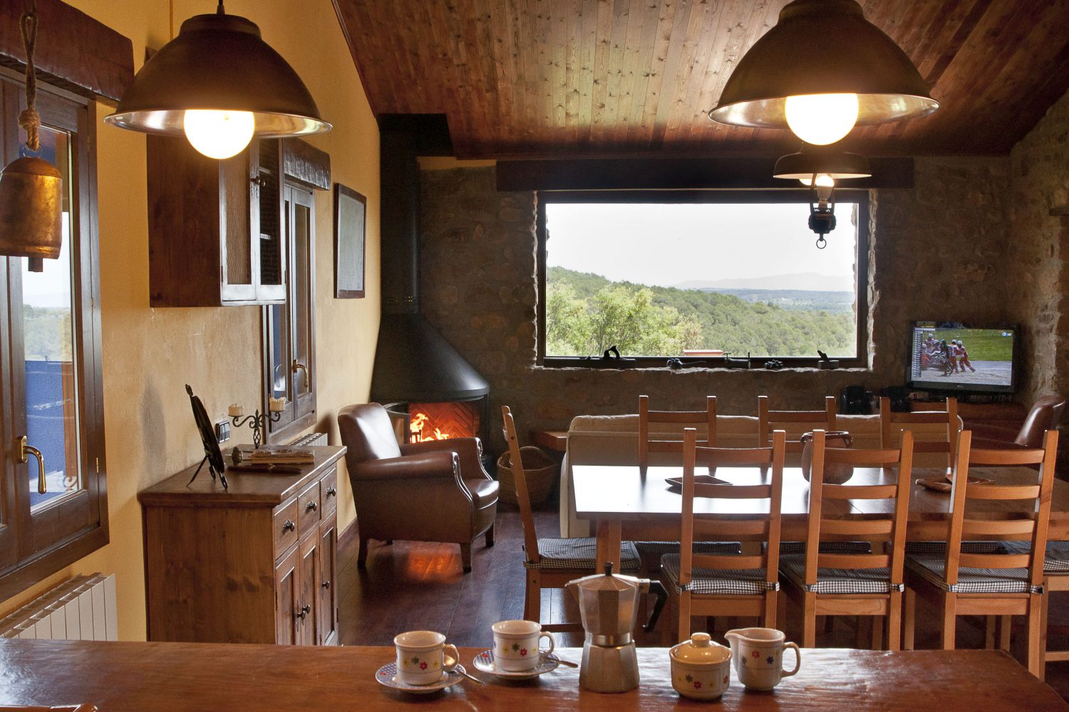 La casa rural de Can Ros ofrece alojamiento independiente para hasta 8 personas. El precio incluye todo lo necesario para una estancia confortable, desde menaje completo de cocina hasta sábanas, mantas, toallas, lavadora, televisión y leña para la chimenea, junto con calefacción central para los meses más frescos.