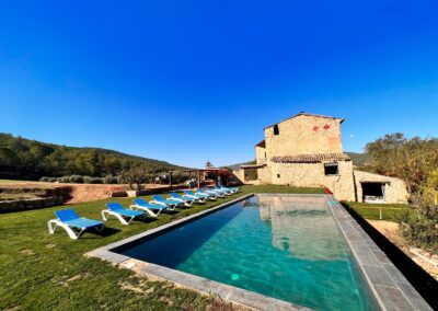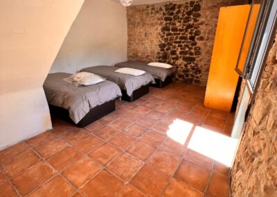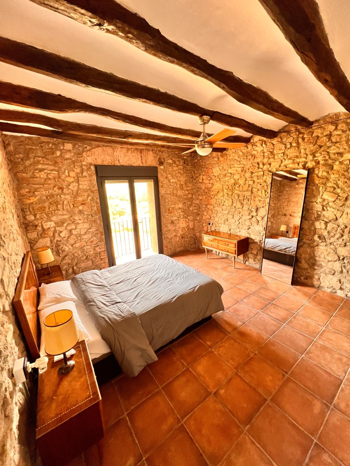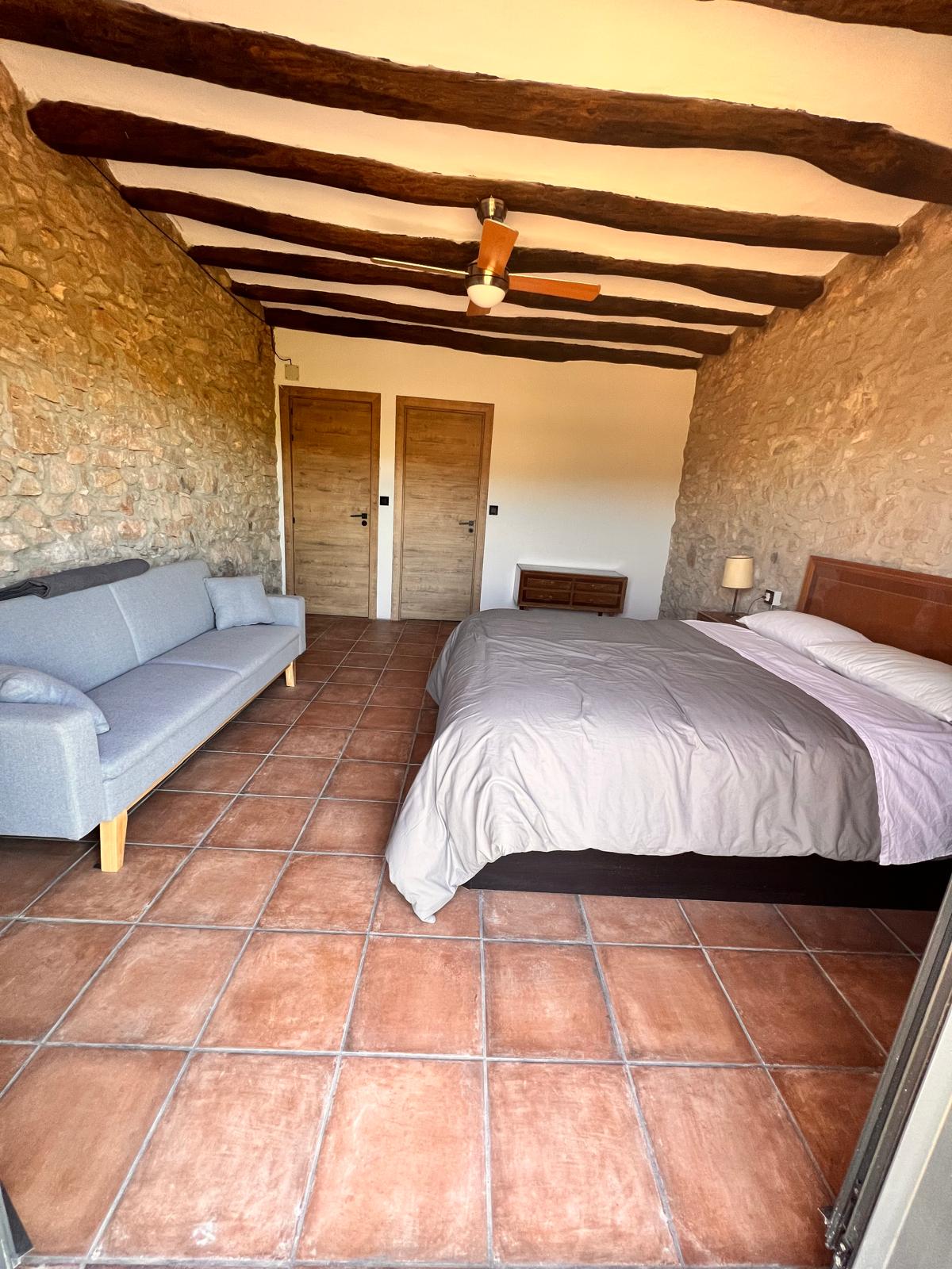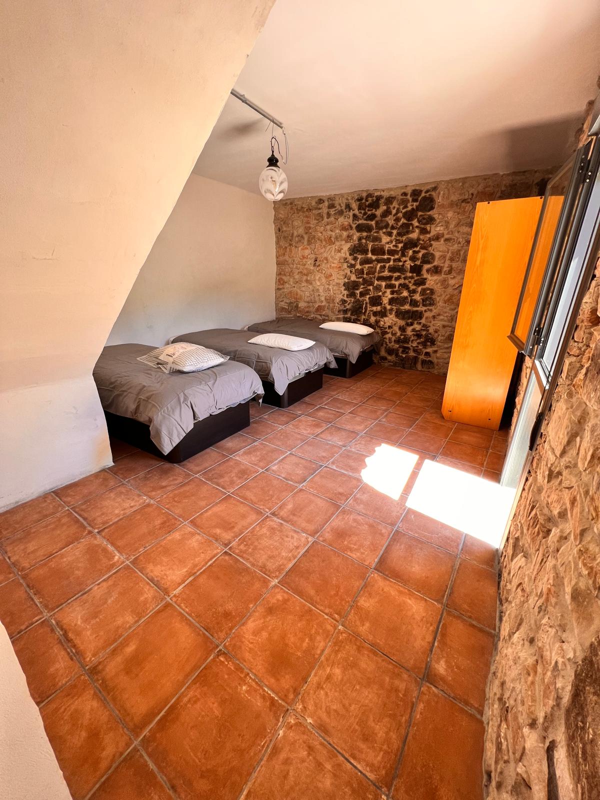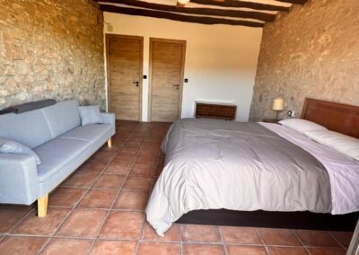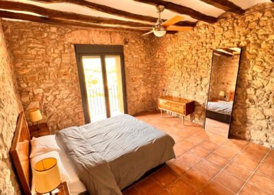 La masía puede alojar cómodamente de 20 a 35 personas, distribuidas en diversas habitaciones que combinan camas dobles, individuales y sofás cama. Esto la convierte en el lugar perfecto para reuniones familiares, escapadas con amigos o eventos especiales. Las habitaciones están decoradas con un estilo rústico y acogedor, ofreciendo un ambiente cálido y relajante.