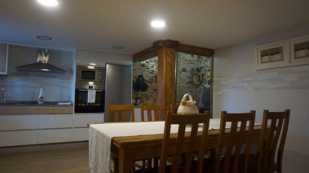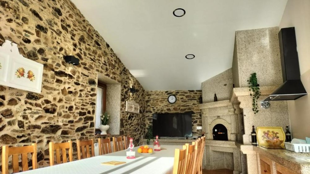 Con capacidad para 12 personas, la casa ofrece 6 dormitorios y 3 baños, además de un acogedor salón con chimenea, comedor amplio y cocina equipada con horno, microondas, lavavajillas y lavadora. Su equipamiento incluye Wi-Fi gratuito, televisión, reproductor de DVD, Nintendo Wii y calefacción, asegurando una estancia cómoda en cualquier época del año.