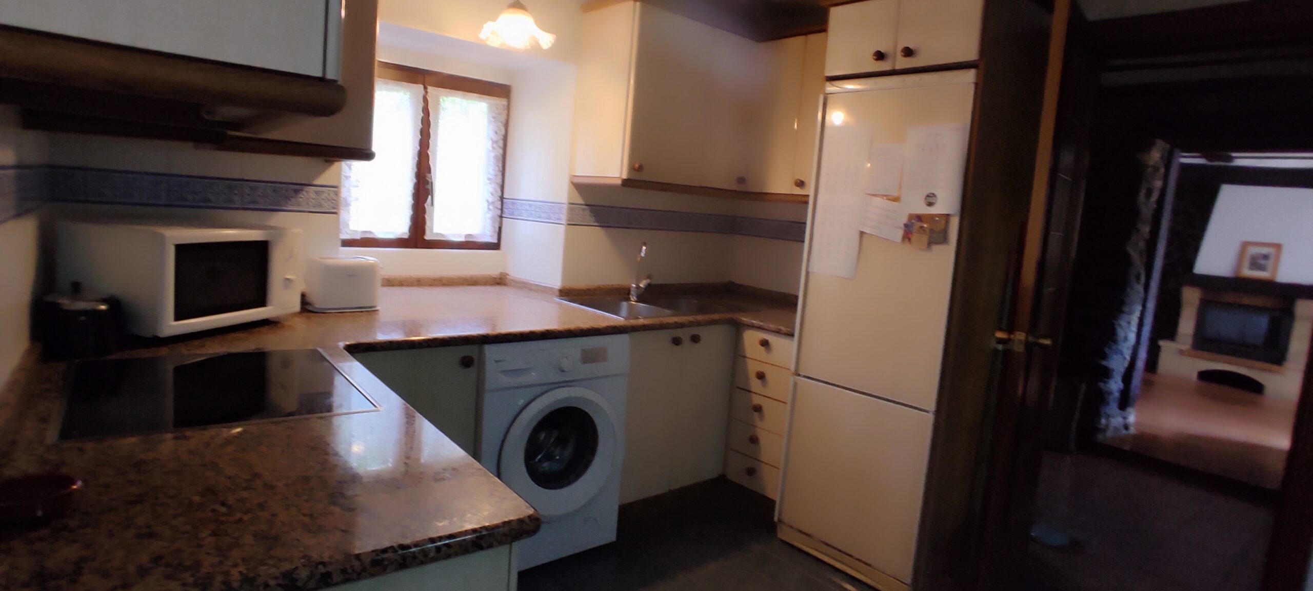 Además, cuenta con una sala diáfana que alberga la zona de estar con cómodos sofás frente a la televisión, la zona de comedor con espacio para todos los huéspedes y una cocina completamente equipada con electrodomésticos, menaje y utensilios necesarios.Desde la cocina, tendras acceso a una de las terrazas.