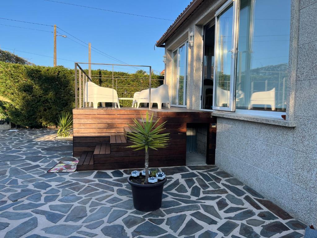 Ubicada a 5 minutos a pie de la Playa de Ostreira, a través de la arboleda te sitúas en la preciosa Senda Costeira da Seca, un camino natural que convierte el acceso al alojamiento en una experiencia con encanto propio. El alojamiento combina la tranquilidad del mar con la autenticidad de un pueblo marinero. La casa se levanta en una finca independiente y totalmente cerrada, lo que garantiza privacidad y descanso durante toda la estancia.